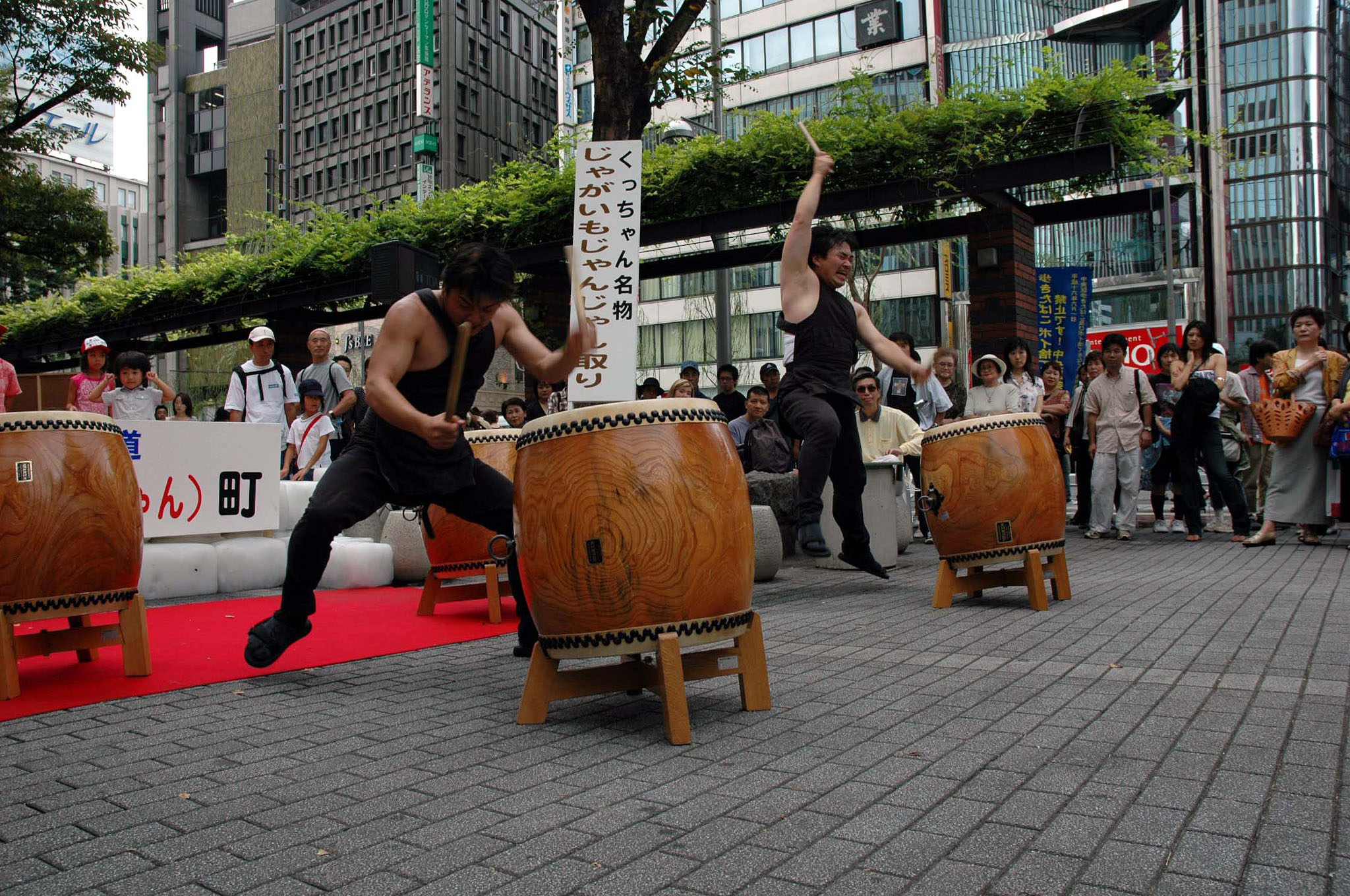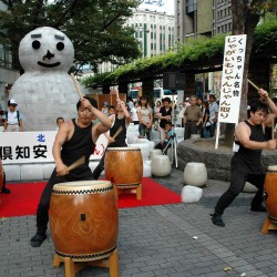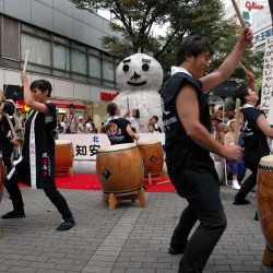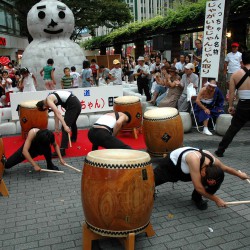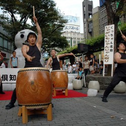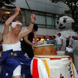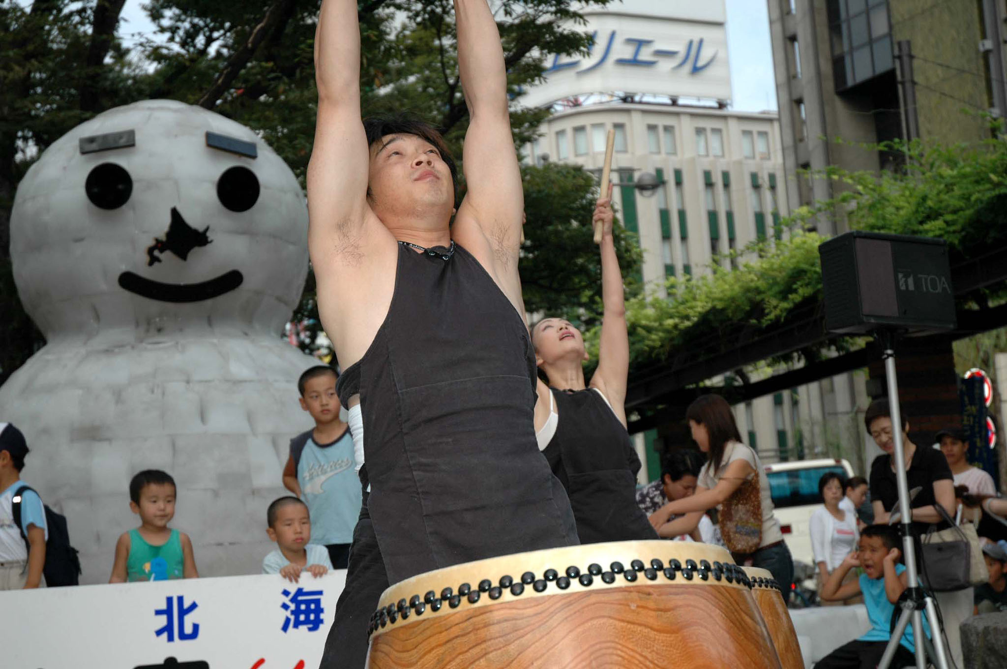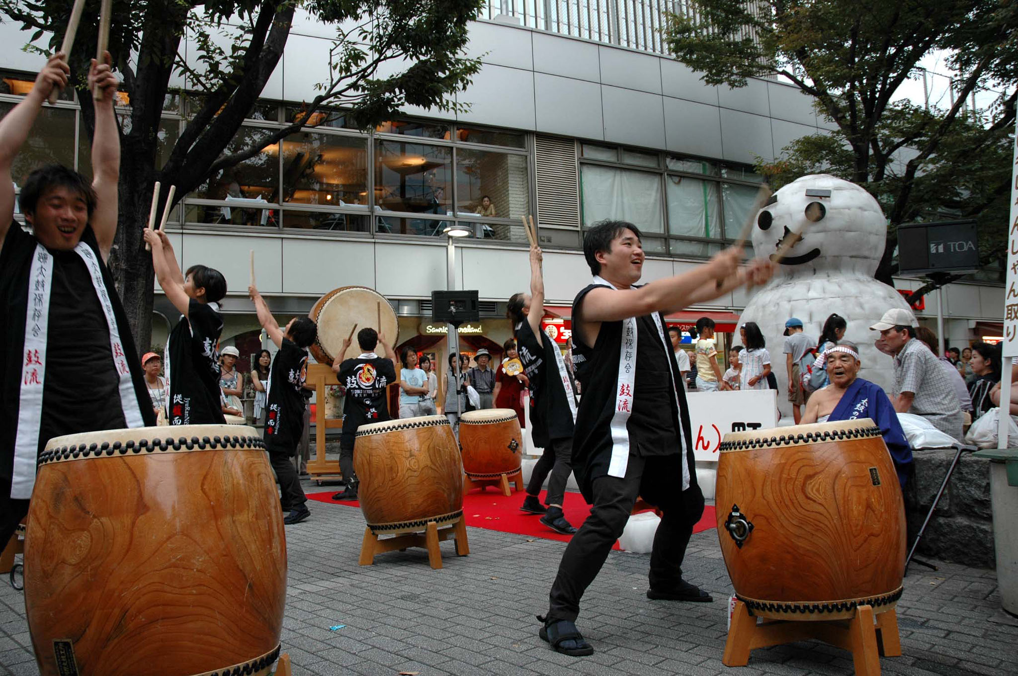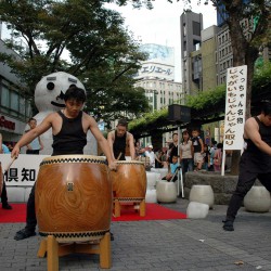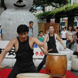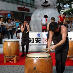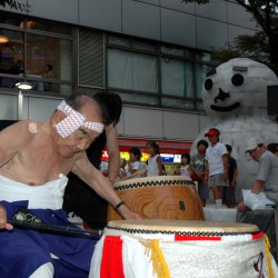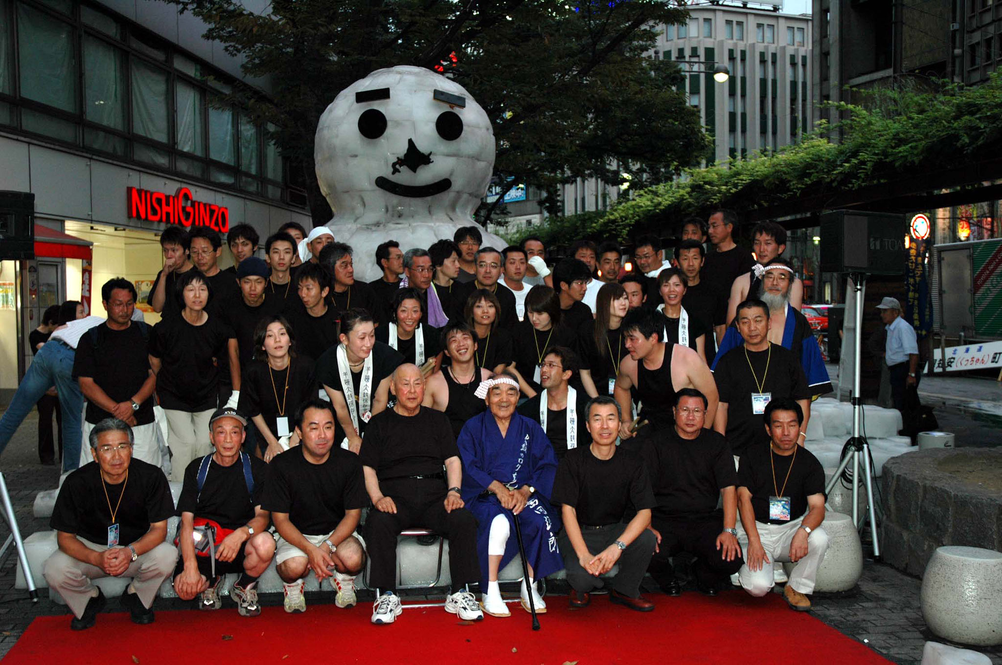 8月22日、東京銀座雪だるまのイベントに参加してきました。21日に現地(数寄屋橋公園)に到着、夕方から雪だるまの製作に入り、翌日イベントがおこなわれました。太鼓以外にもジャガイモのじゃんじゃんとりや、クイズ・スイカ割り等、とても楽しい内容でした。