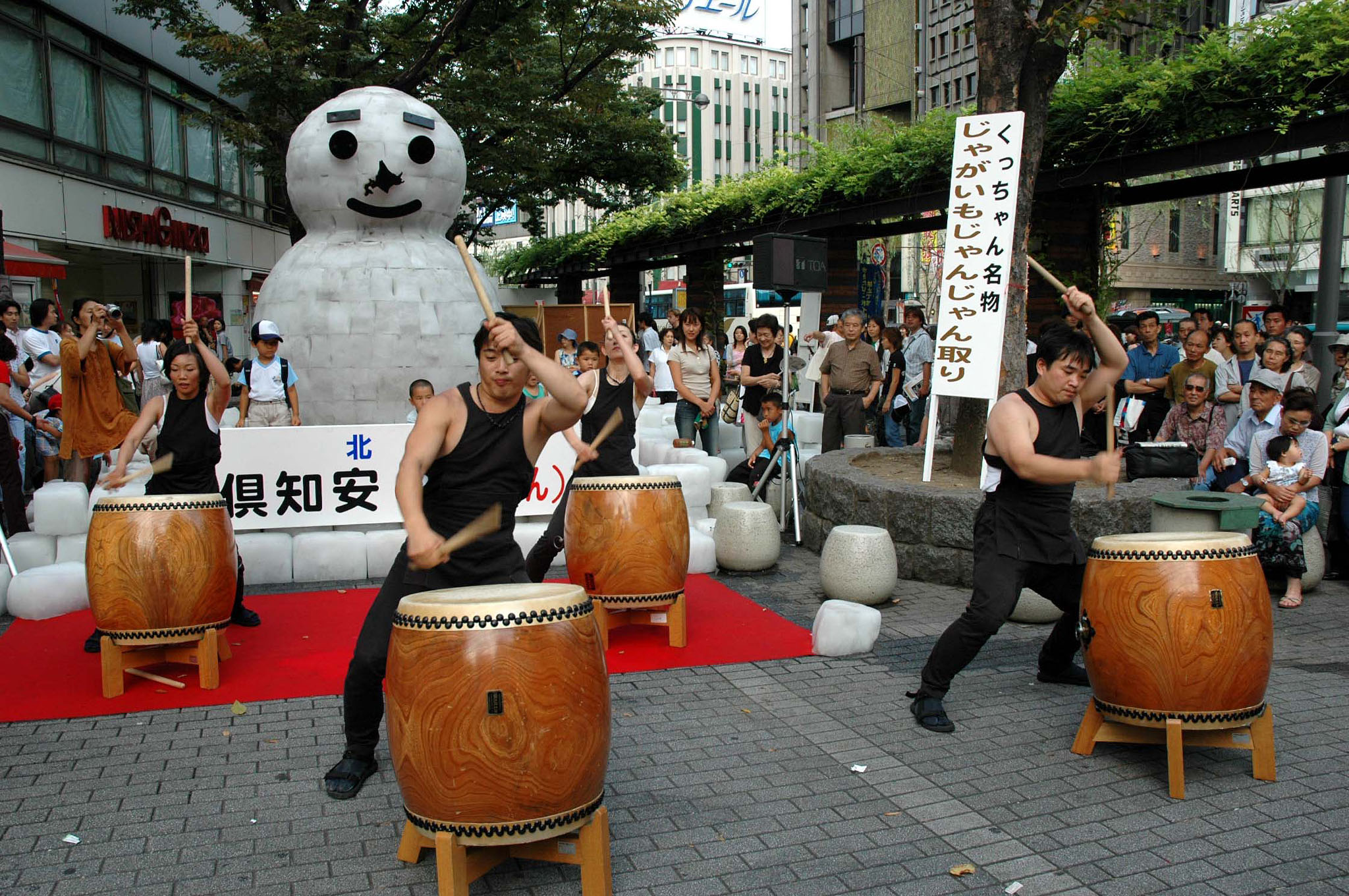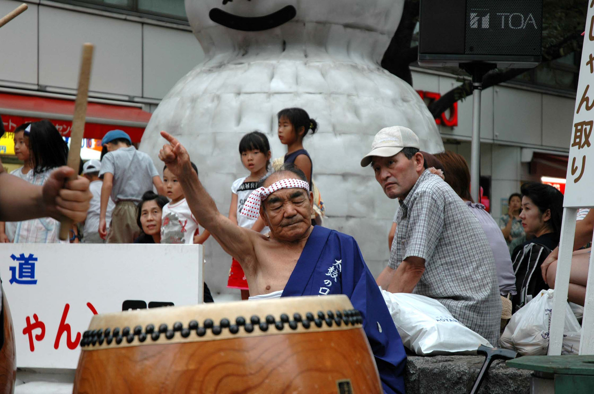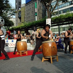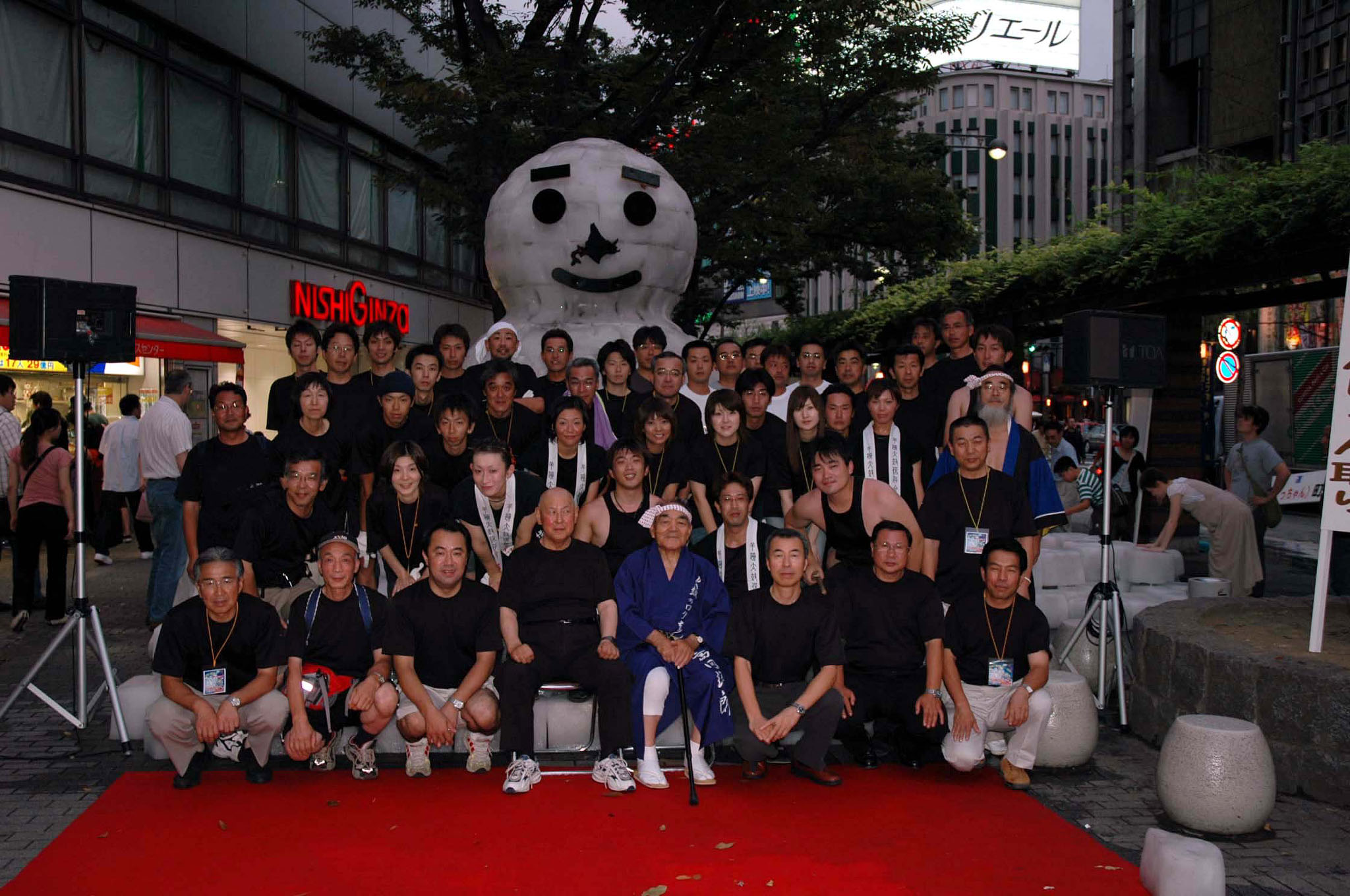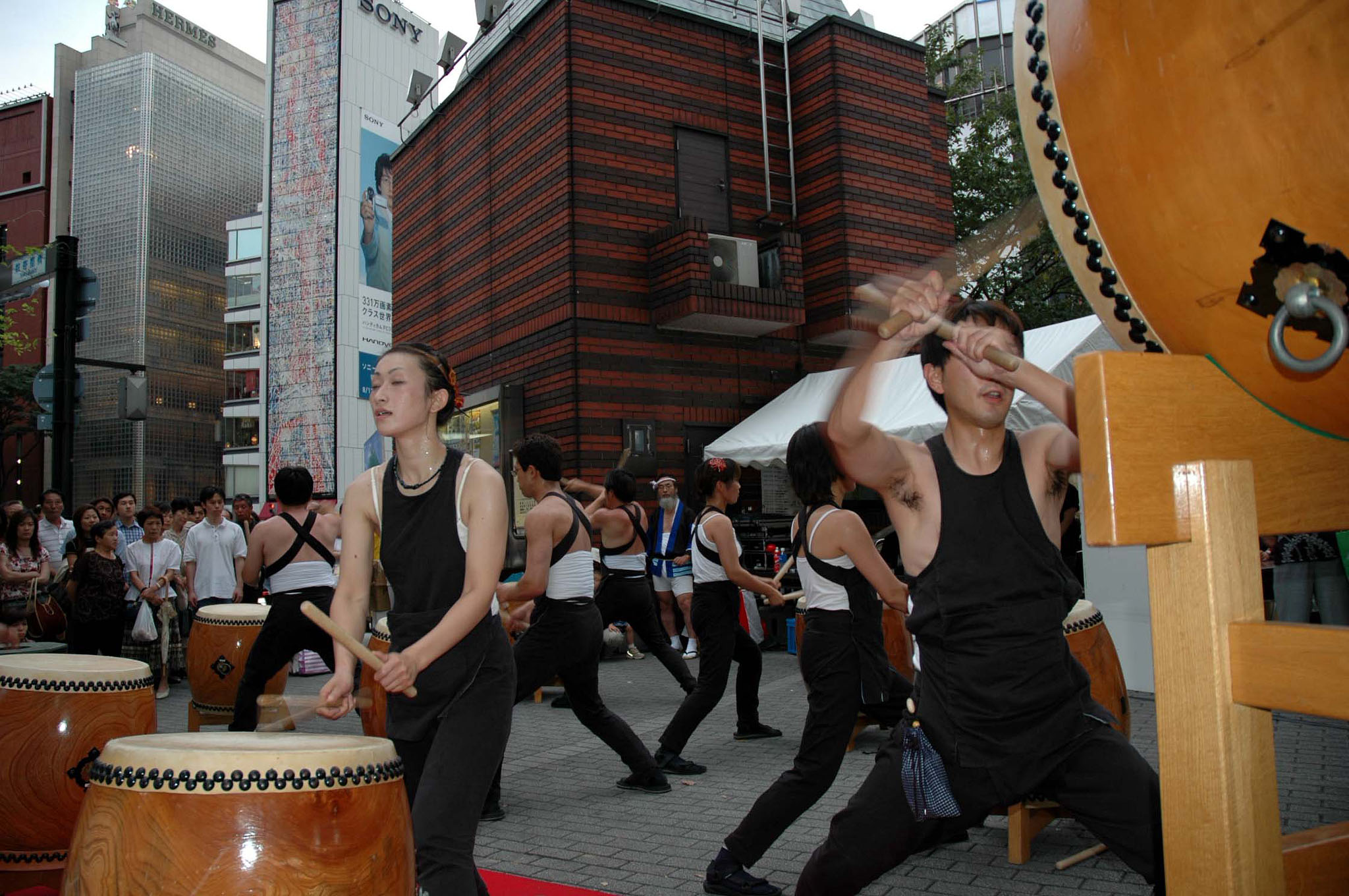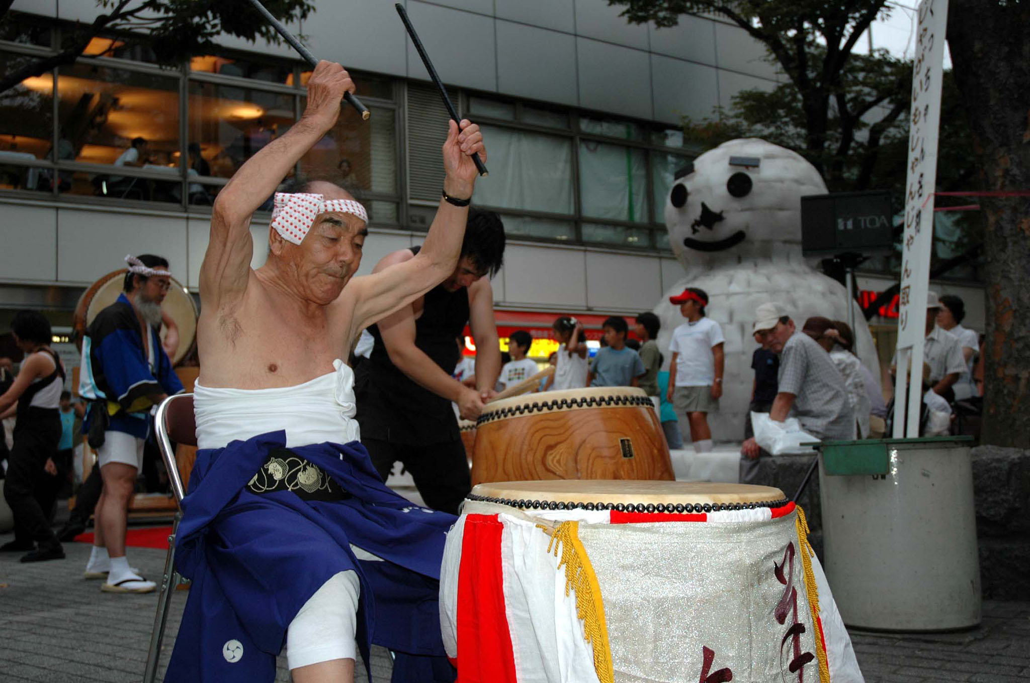 8月22日、東京銀座雪だるまのイベントに参加してきました。21日に現地(数寄屋橋公園)に到着、夕方から雪だるまの製作に入り、翌日イベントがおこなわれました。太鼓以外にもジャガイモのじゃんじゃんとりや、クイズ・スイカ割り等、とても楽しい内容でした。