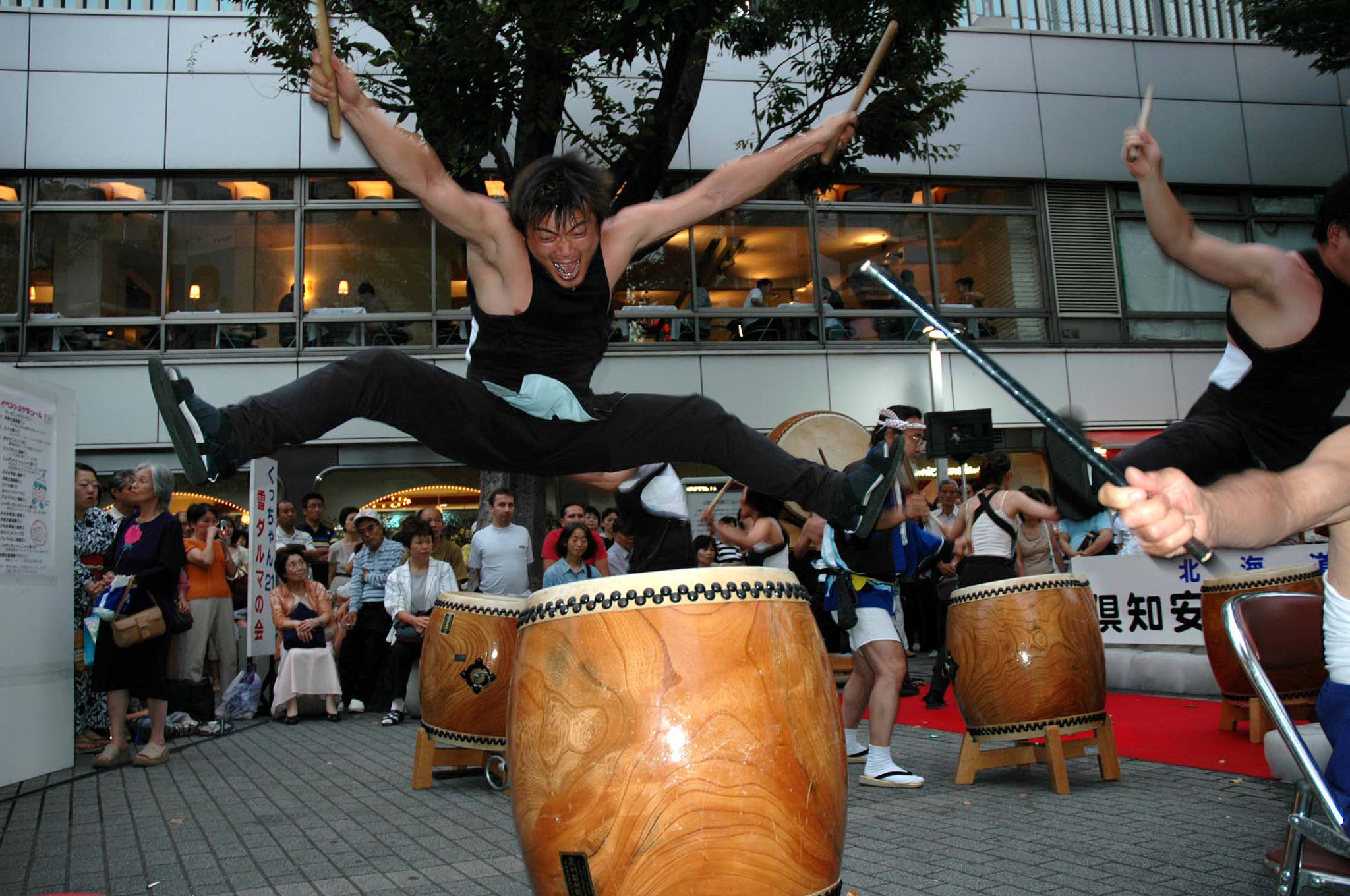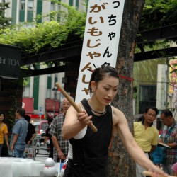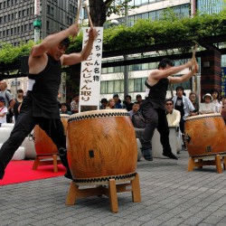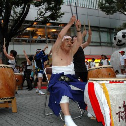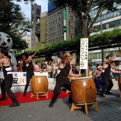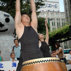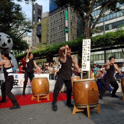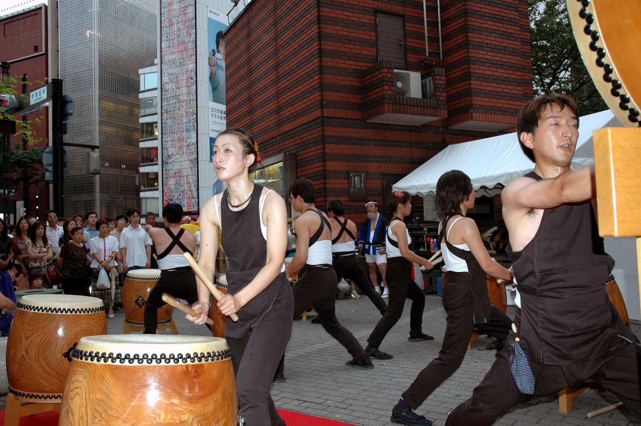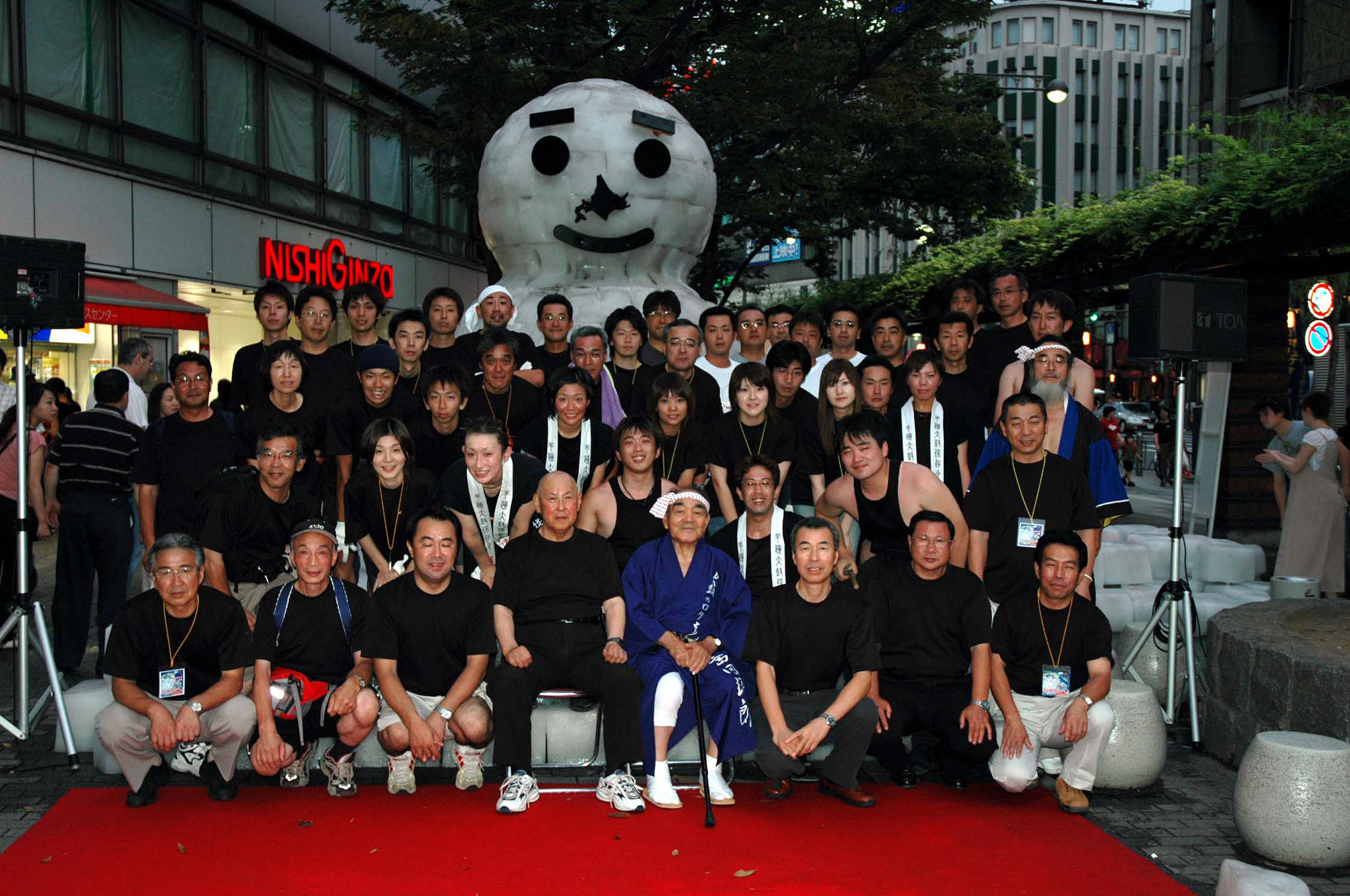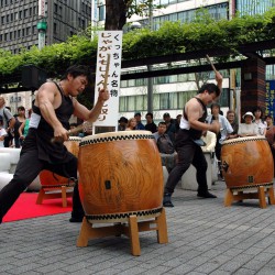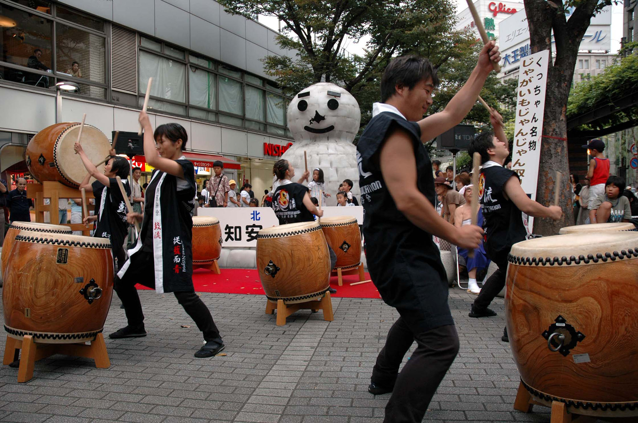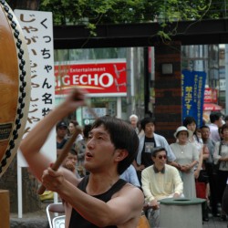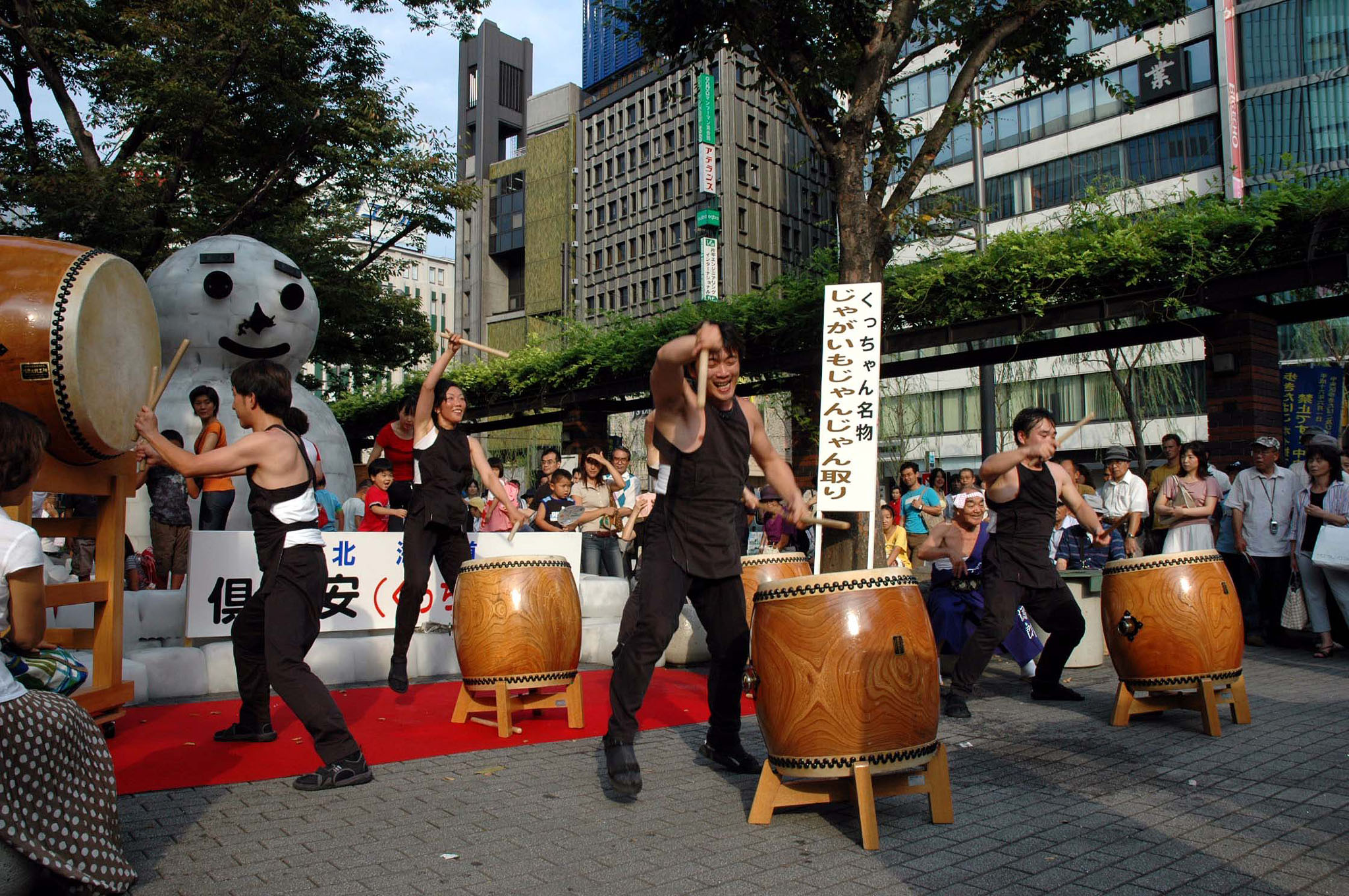8月22日、東京銀座雪だるまのイベントに参加してきました。21日に現地(数寄屋橋公園)に到着、夕方から雪だるまの製作に入り、翌日イベントがおこなわれました。太鼓以外にもジャガイモのじゃんじゃんとりや、クイズ・スイカ割り等、とても楽しい内容でした。