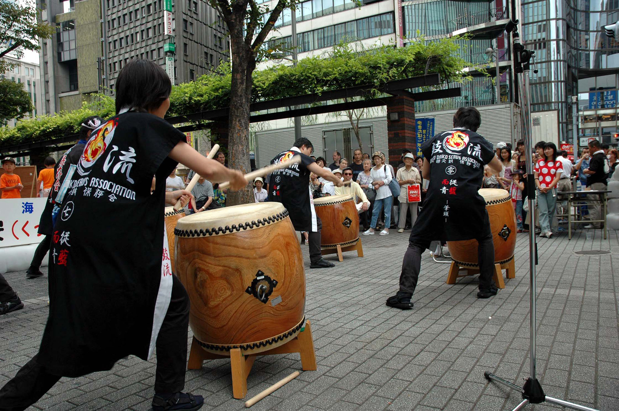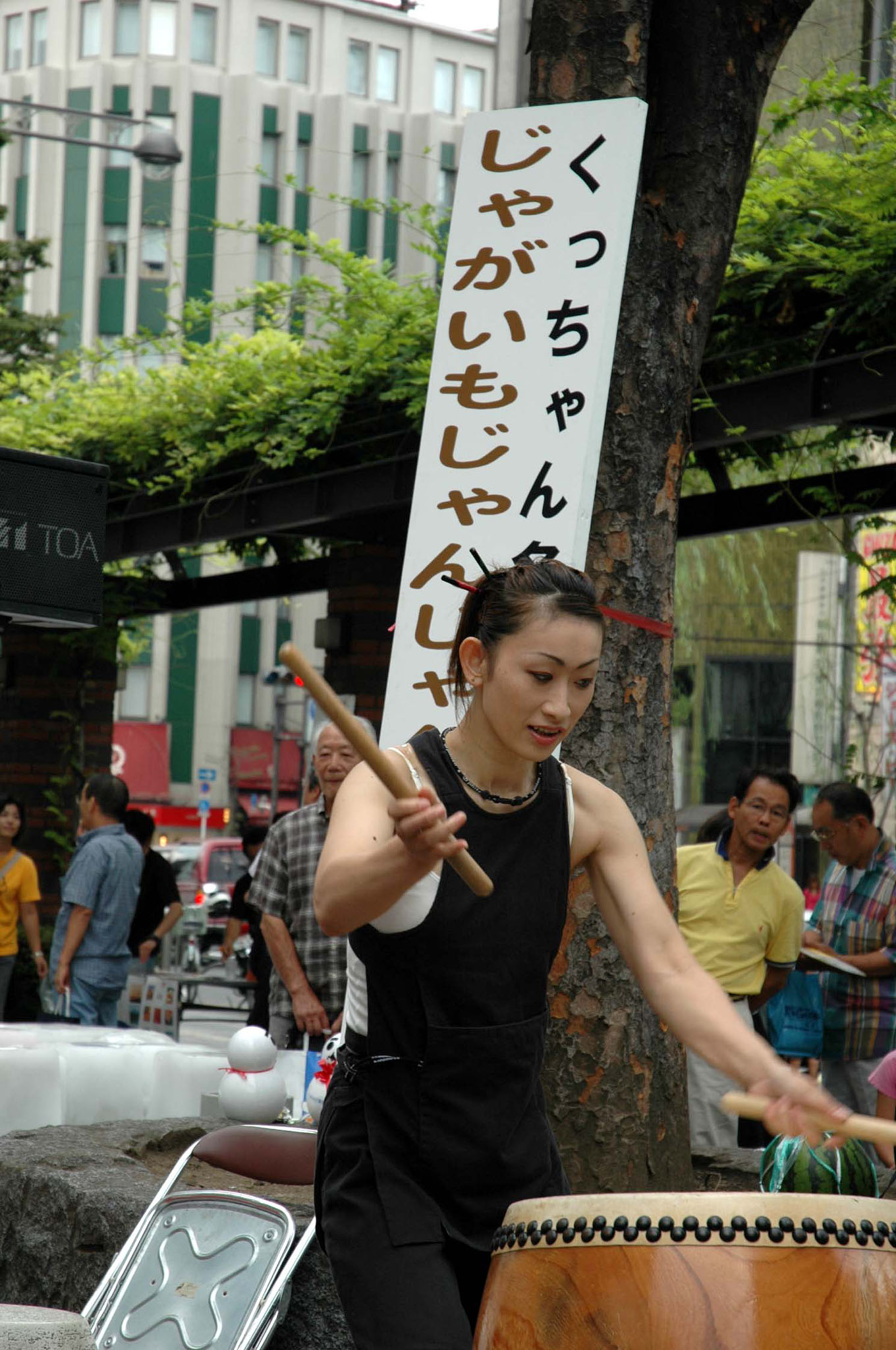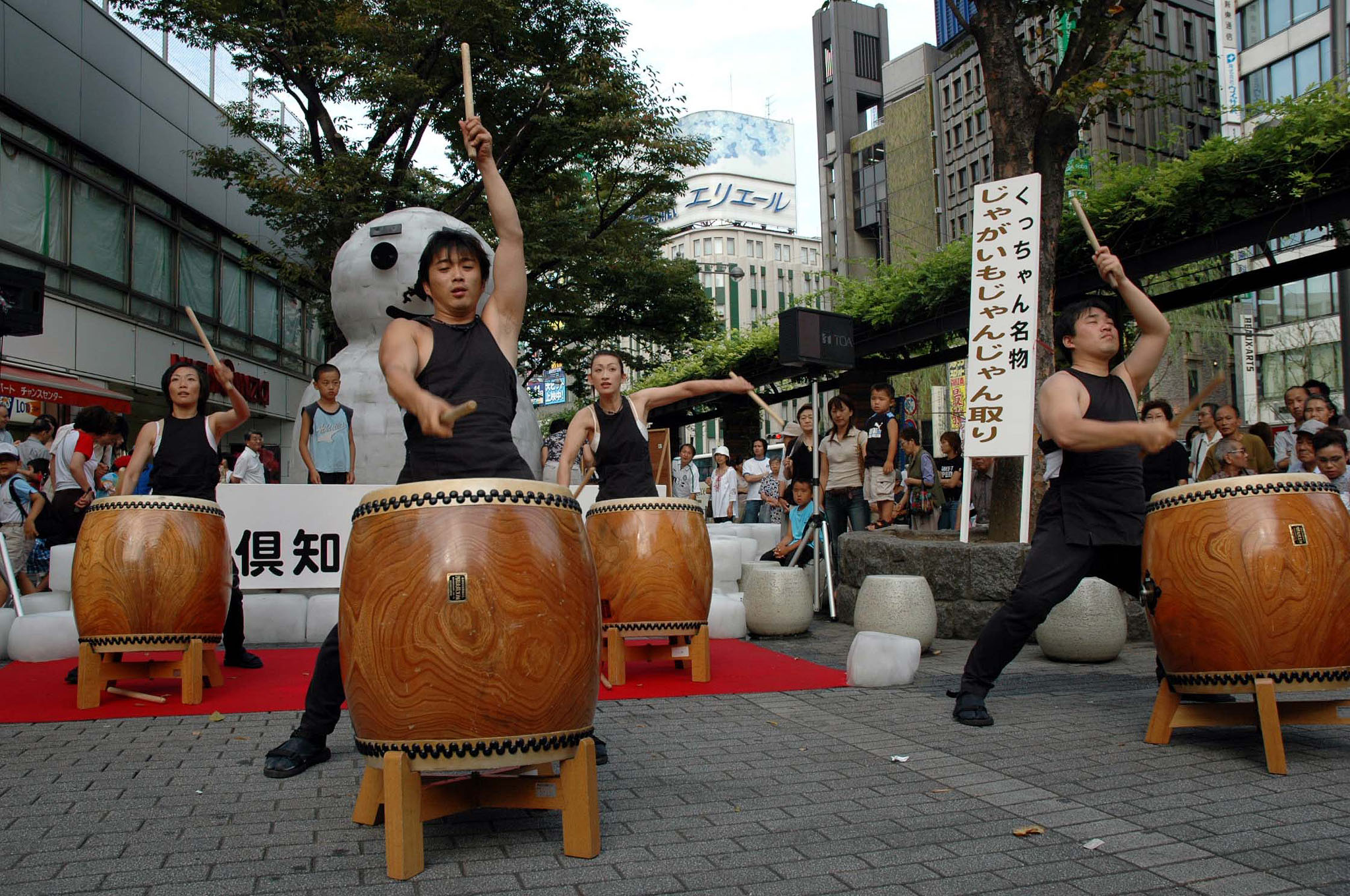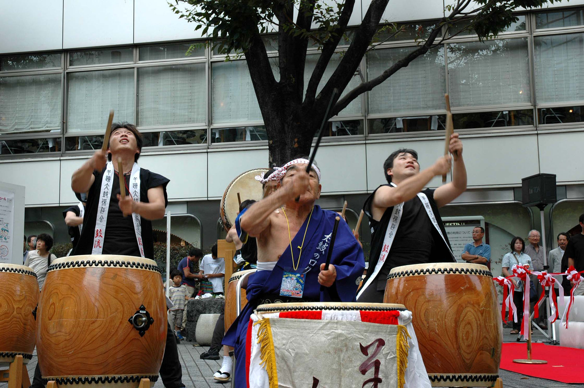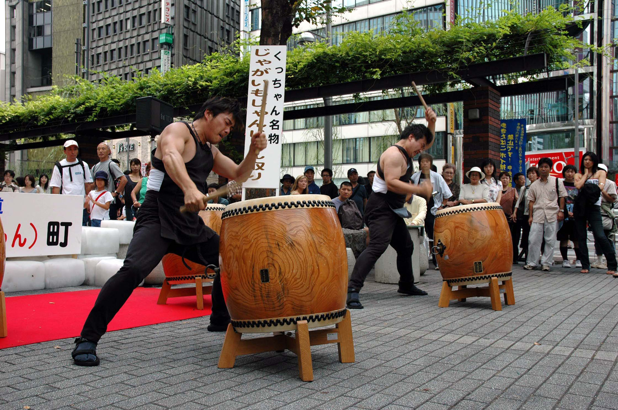 8月22日、東京銀座雪だるまのイベントに参加してきました。21日に現地(数寄屋橋公園)に到着、夕方から雪だるまの製作に入り、翌日イベントがおこなわれました。太鼓以外にもジャガイモのじゃんじゃんとりや、クイズ・スイカ割り等、とても楽しい内容でした。