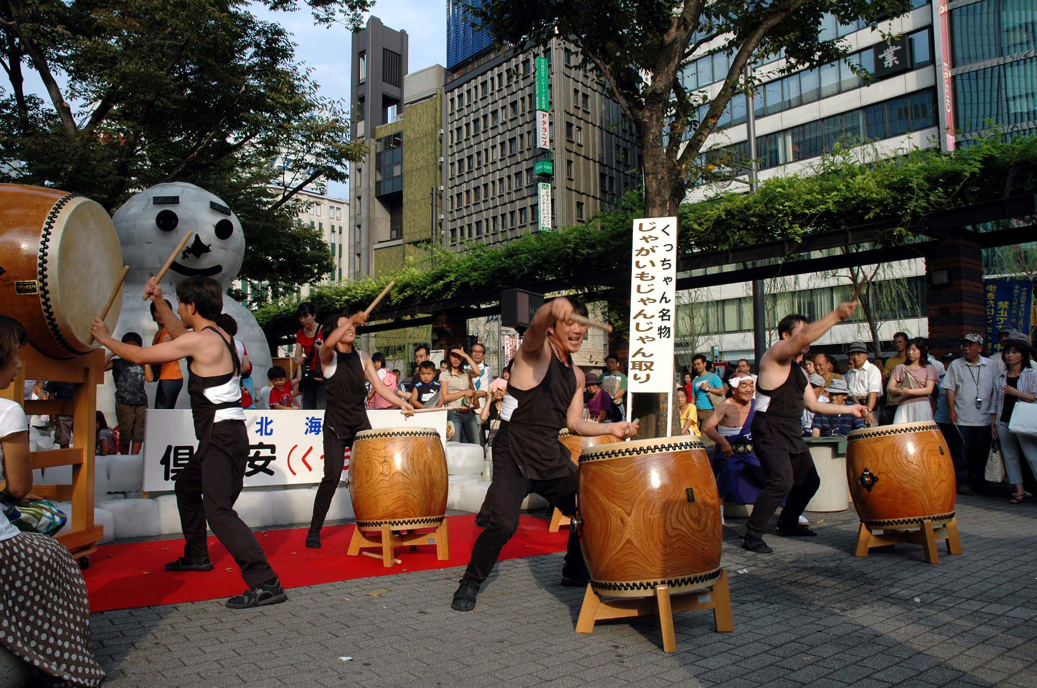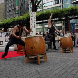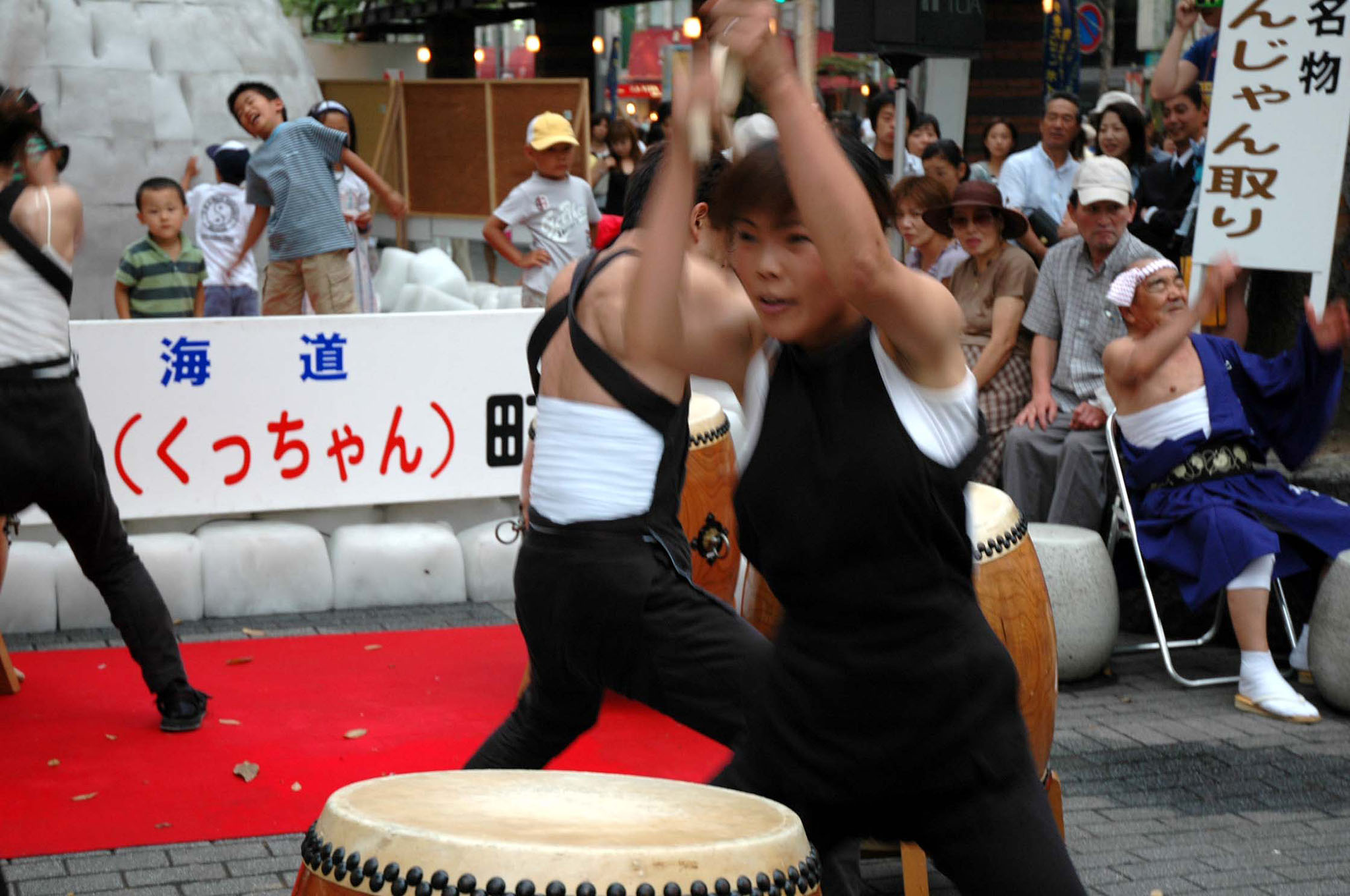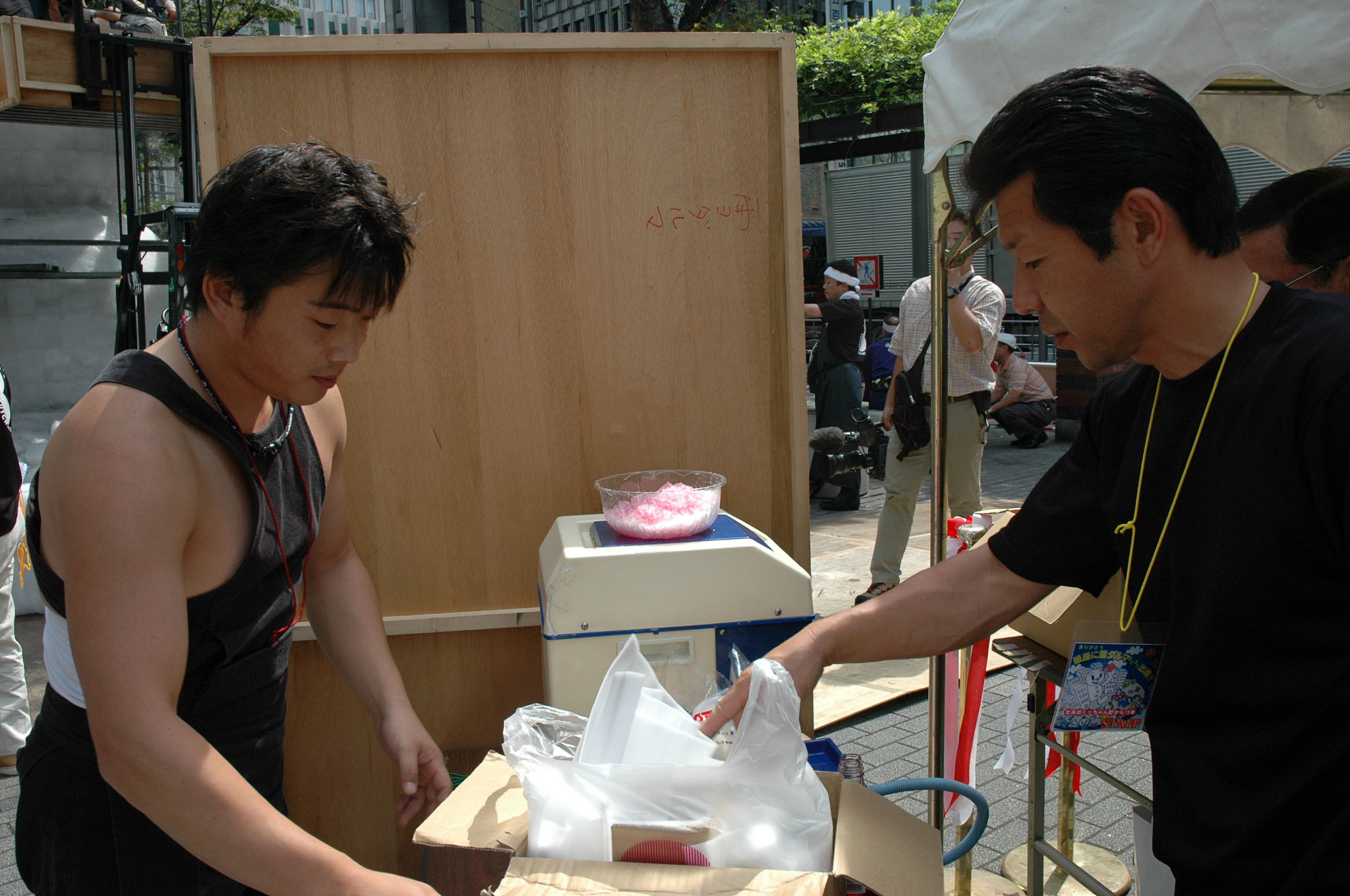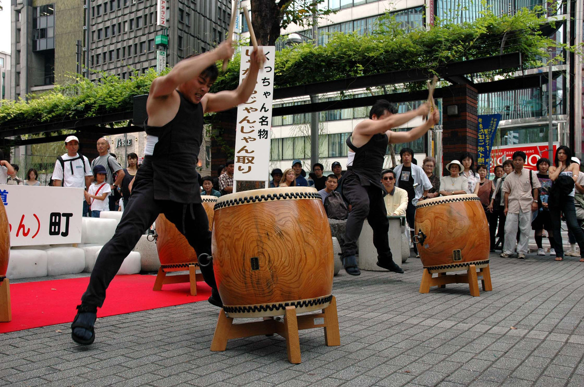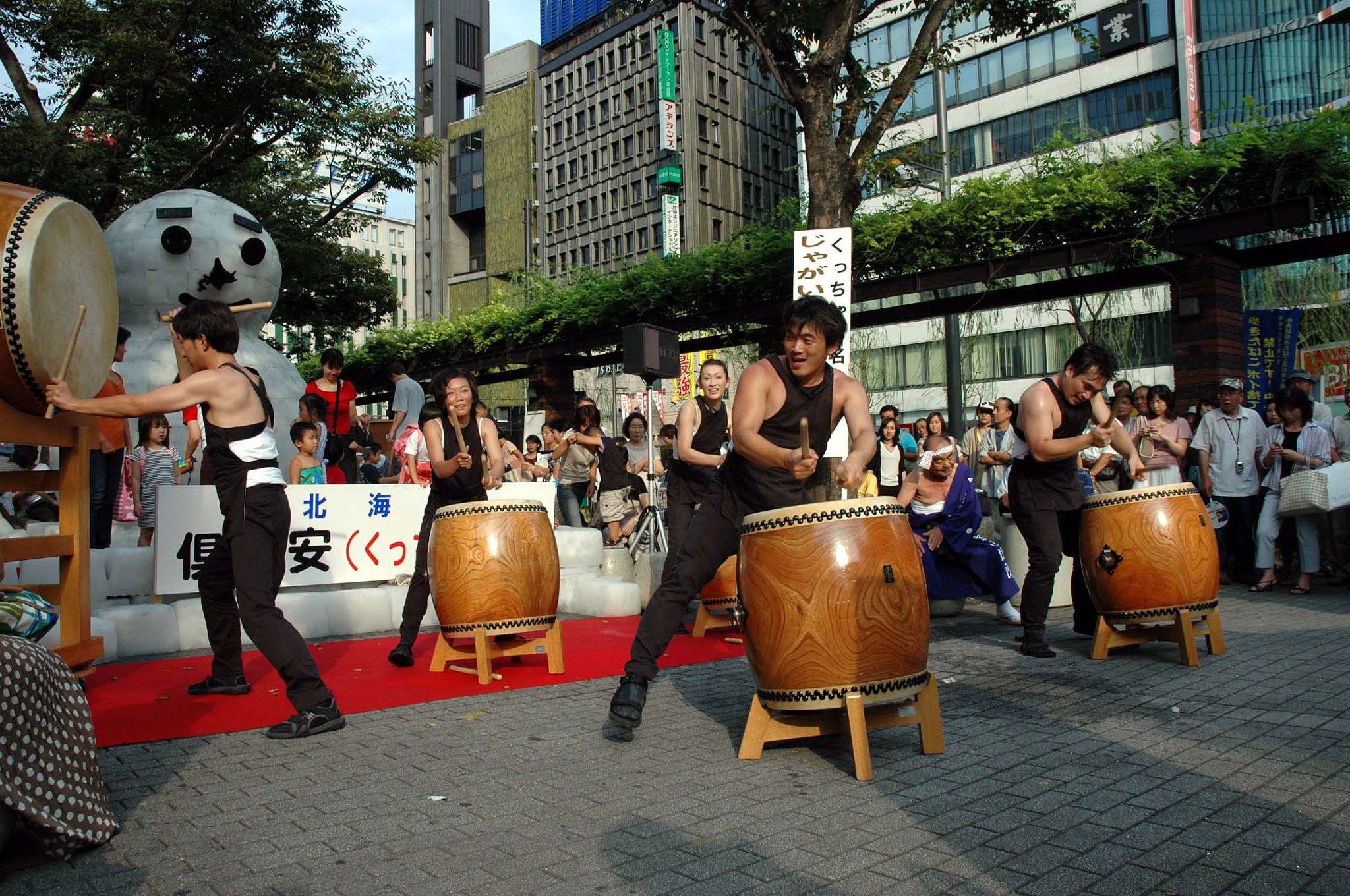 8月22日、東京銀座雪だるまのイベントに参加してきました。21日に現地(数寄屋橋公園)に到着、夕方から雪だるまの製作に入り、翌日イベントがおこなわれました。太鼓以外にもジャガイモのじゃんじゃんとりや、クイズ・スイカ割り等、とても楽しい内容でした。