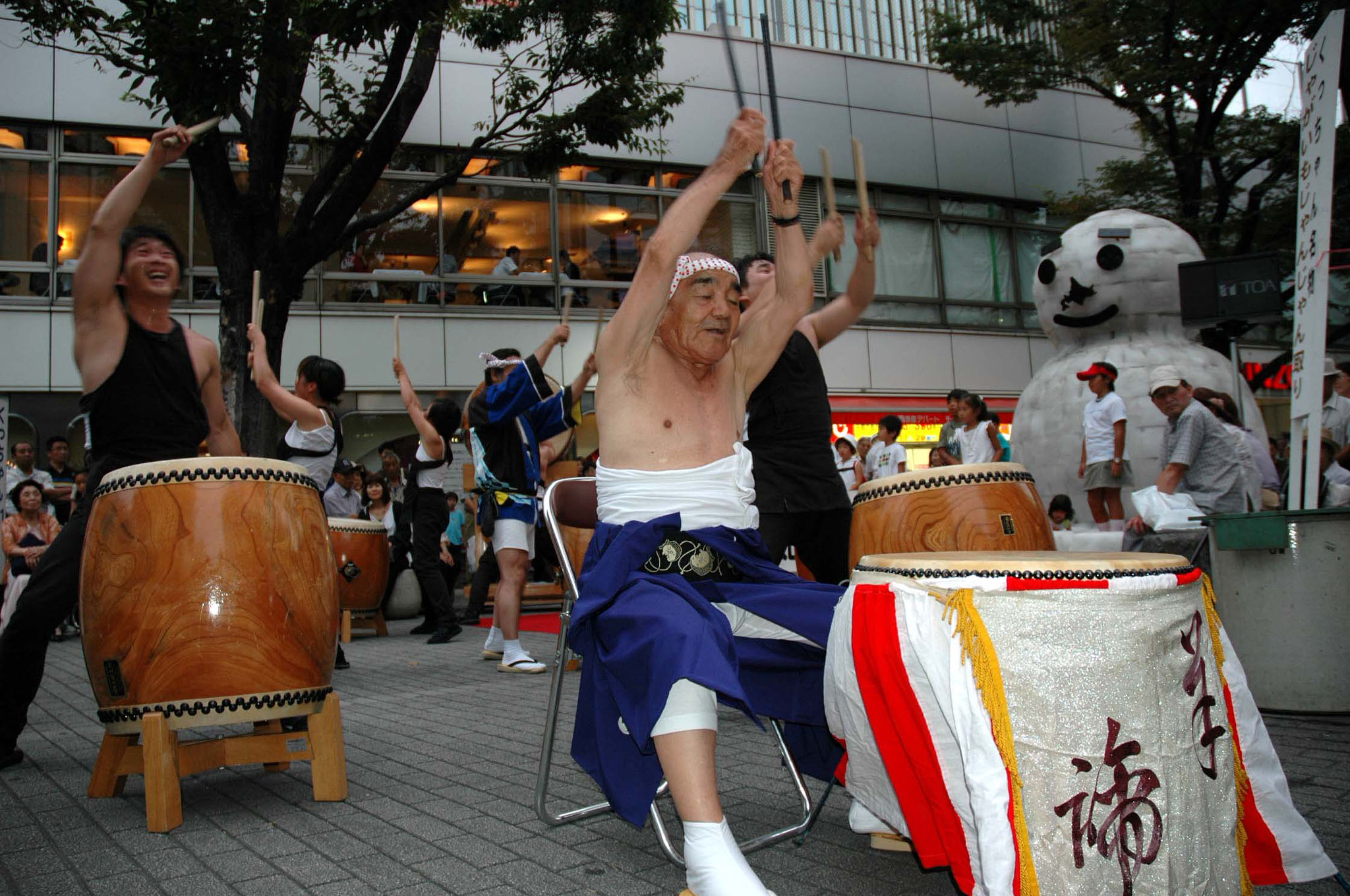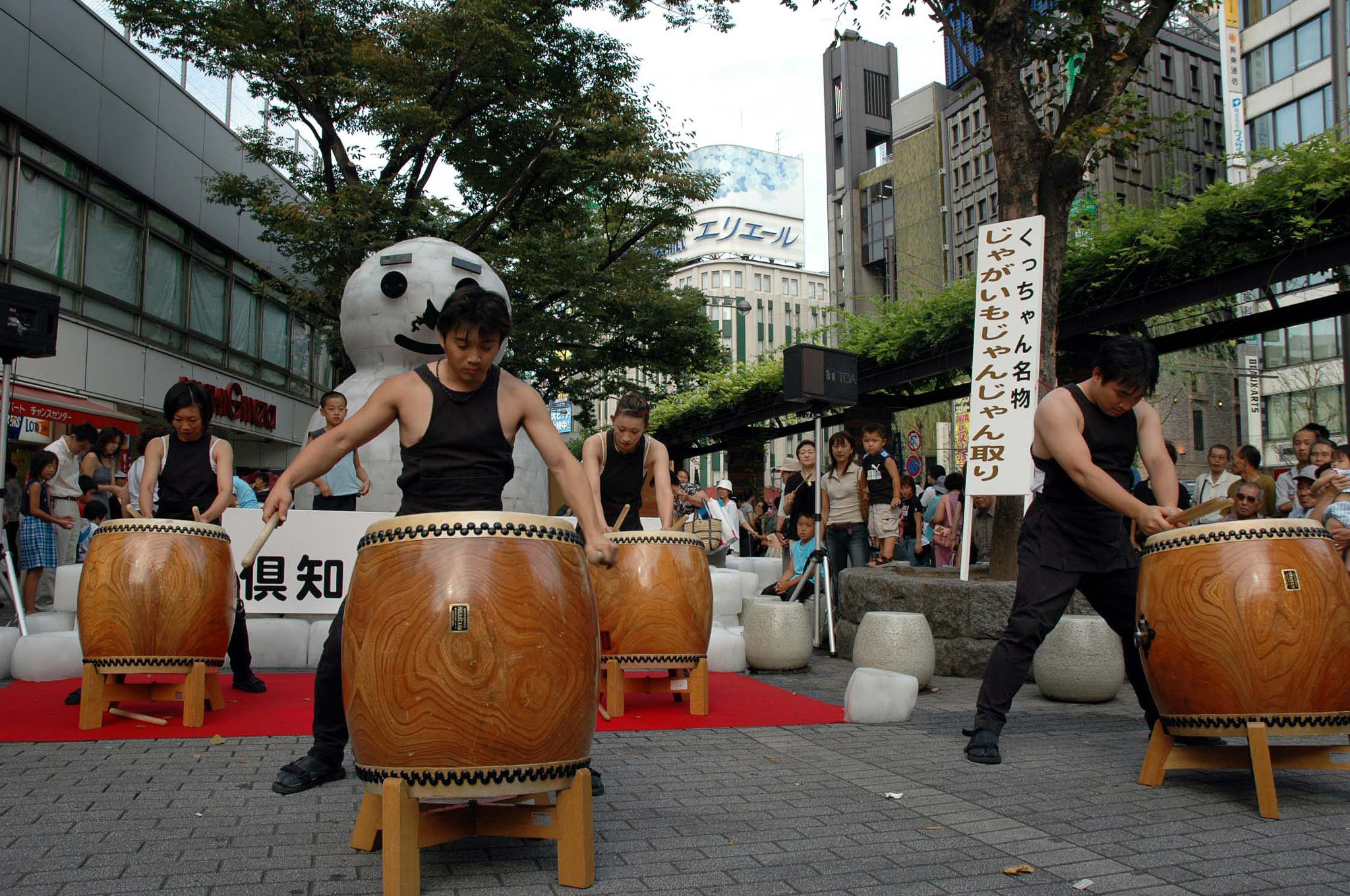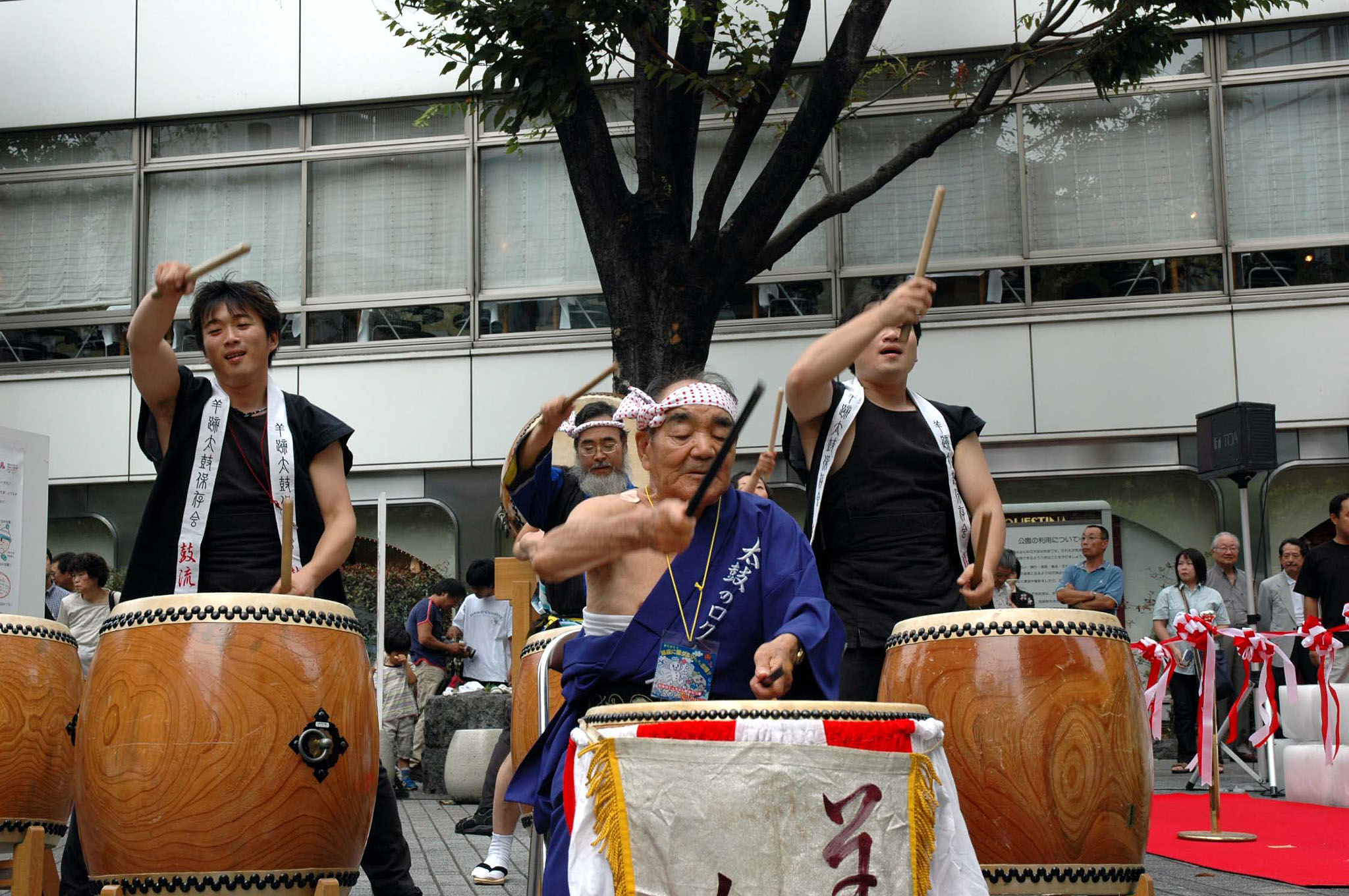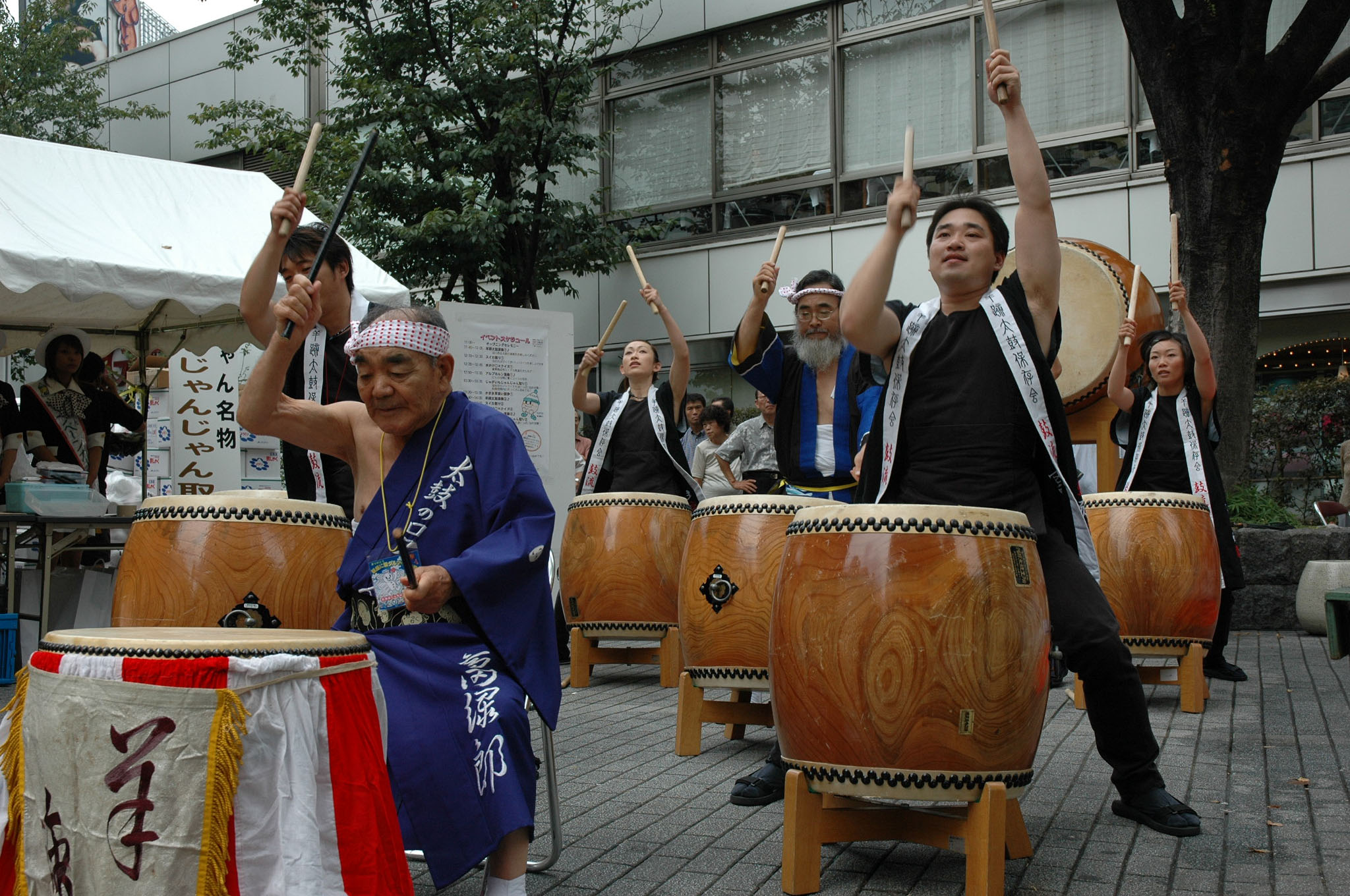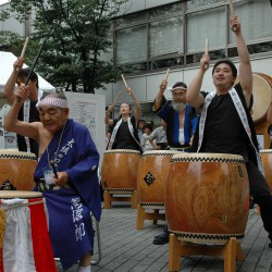 8月22日、東京銀座雪だるまのイベントに参加してきました。21日に現地(数寄屋橋公園)に到着、夕方から雪だるまの製作に入り、翌日イベントがおこなわれました。太鼓以外にもジャガイモのじゃんじゃんとりや、クイズ・スイカ割り等、とても楽しい内容でした。