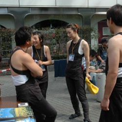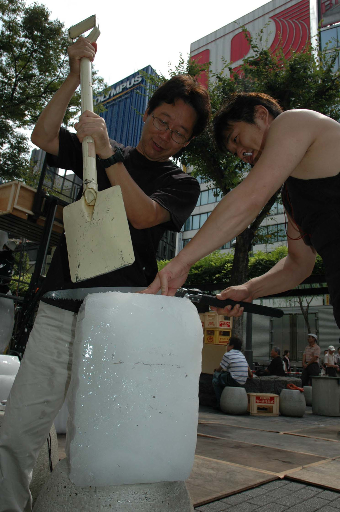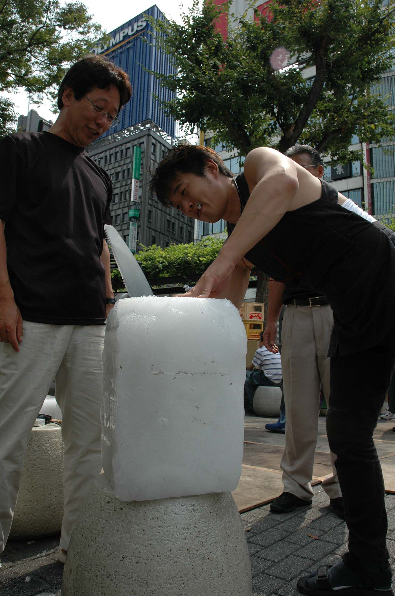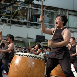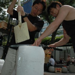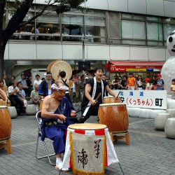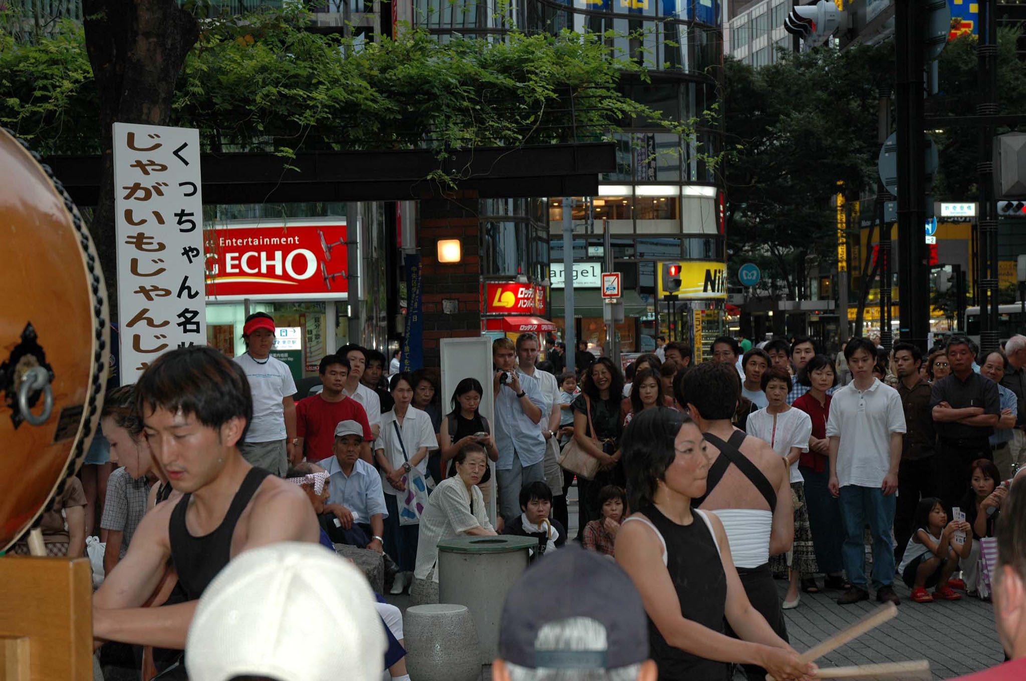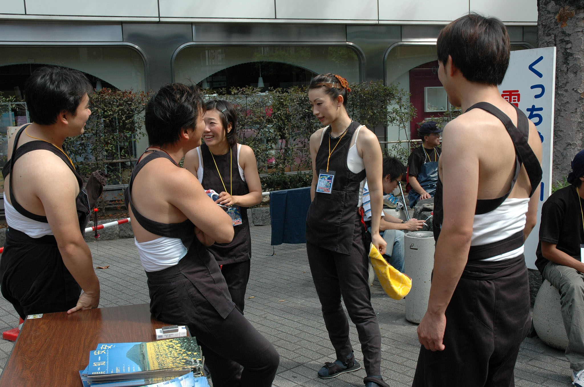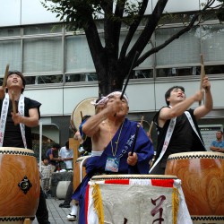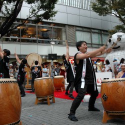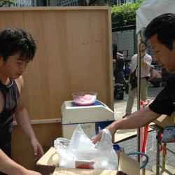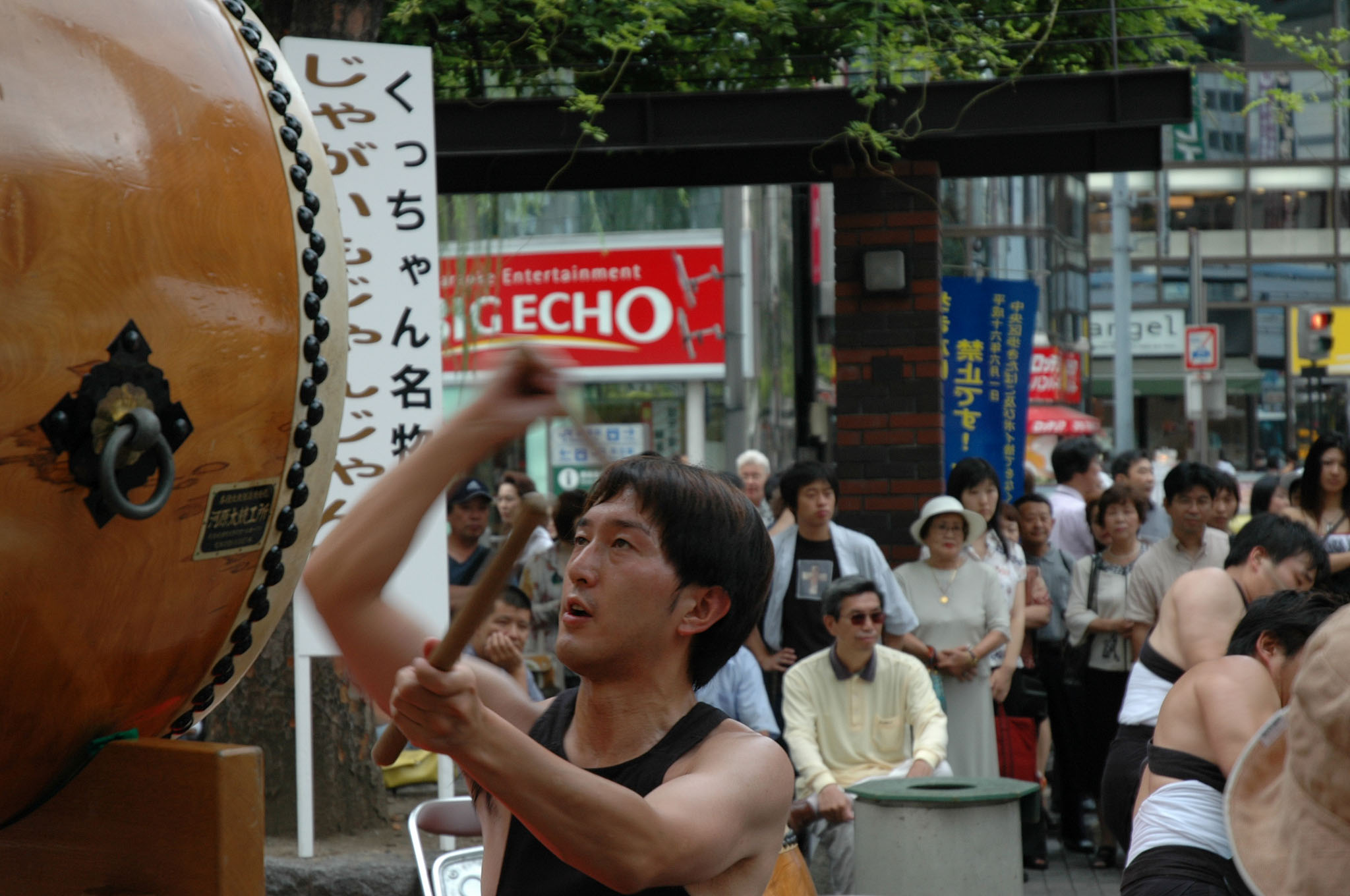 8月22日、東京銀座雪だるまのイベントに参加してきました。21日に現地(数寄屋橋公園)に到着、夕方から雪だるまの製作に入り、翌日イベントがおこなわれました。太鼓以外にもジャガイモのじゃんじゃんとりや、クイズ・スイカ割り等、とても楽しい内容でした。