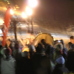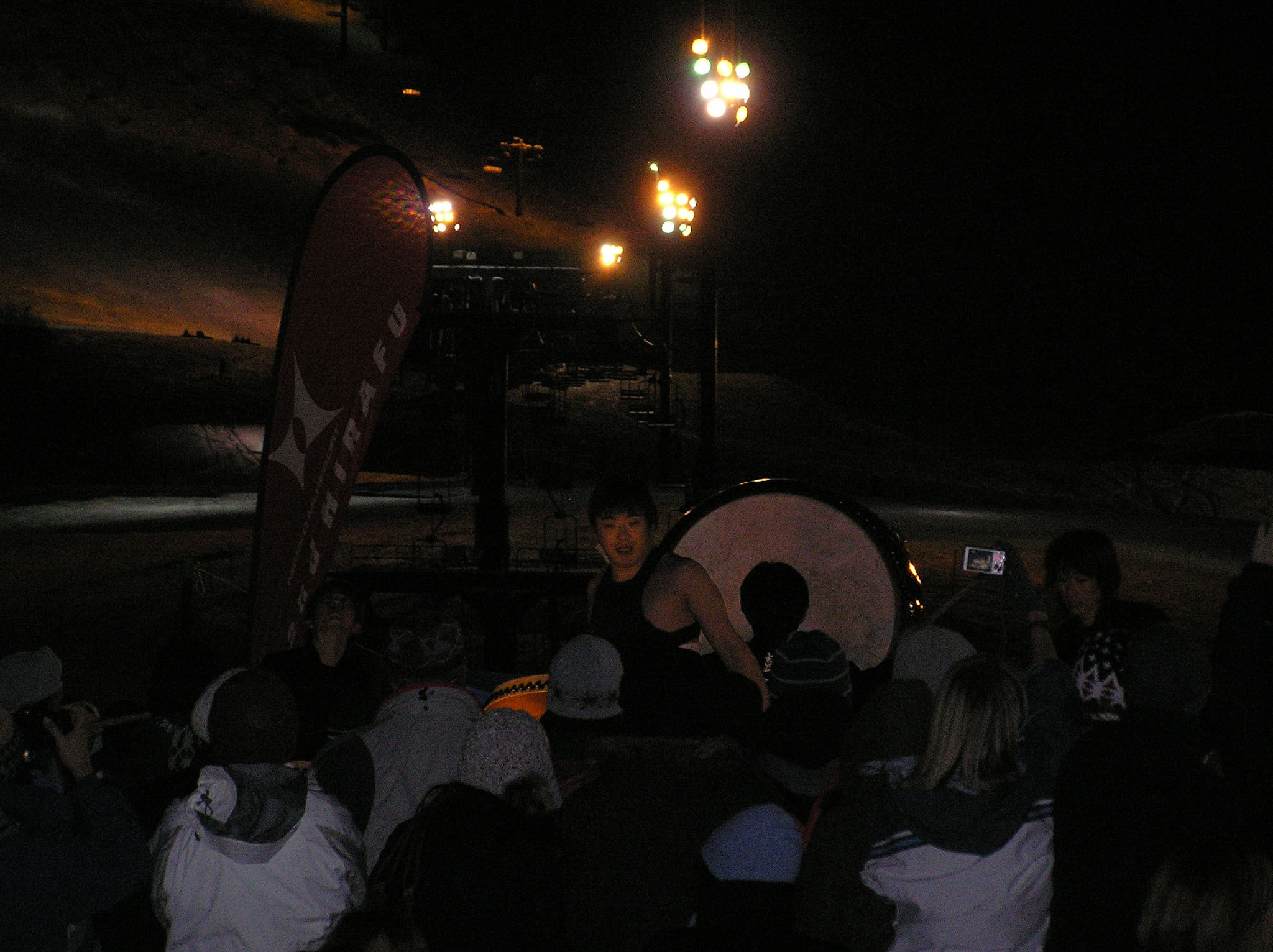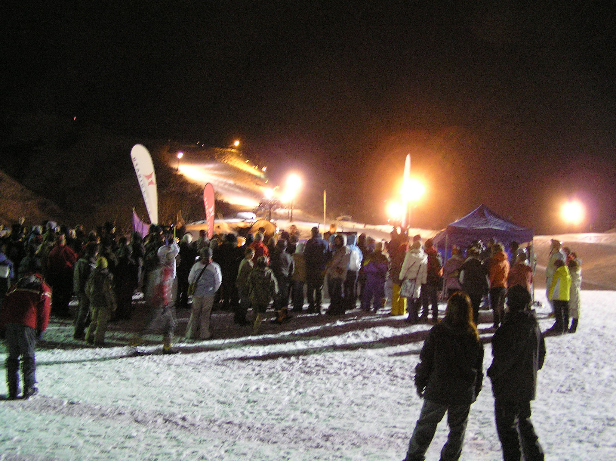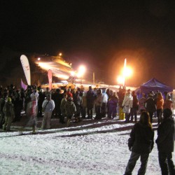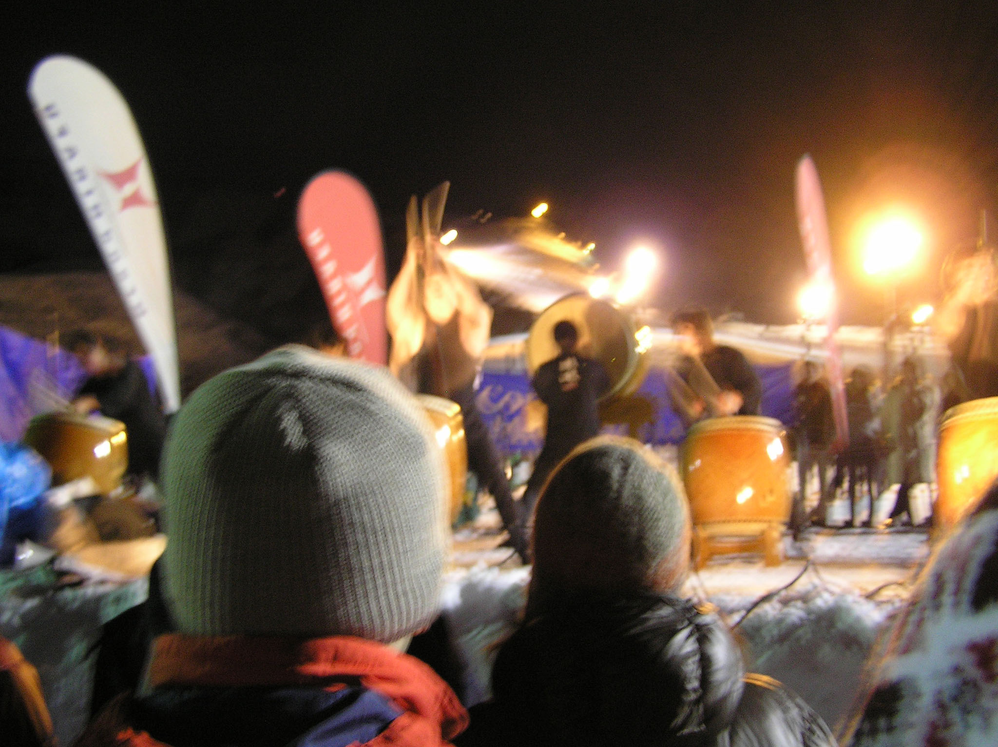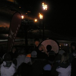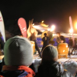 写真がぼやけていてごめんなさい、これが終わった後は新年のカウントダウンが始まり、happy neuw yearの叫びとともに、ゲレンデからスキーでのたいまつ滑走が始まりました。