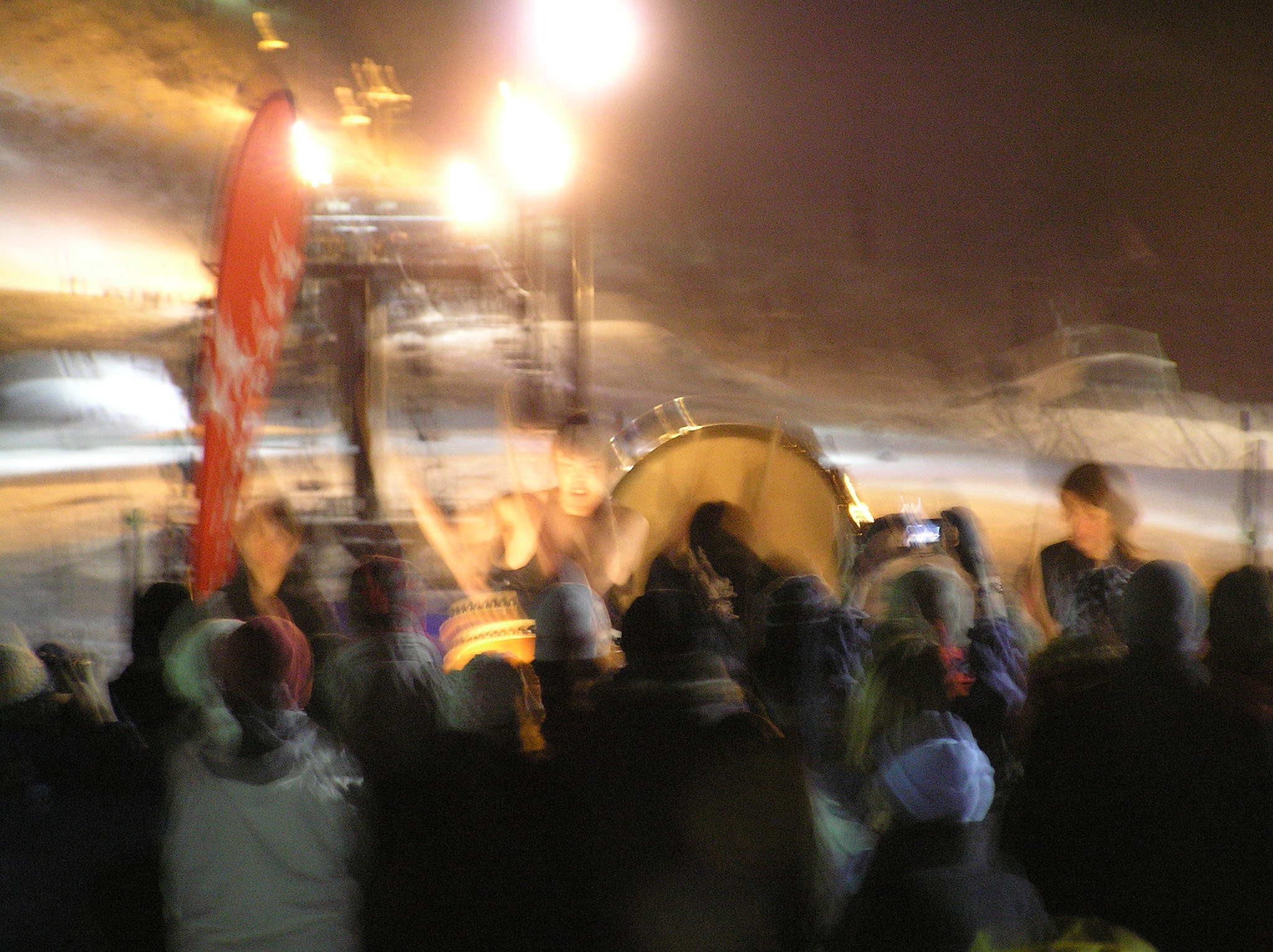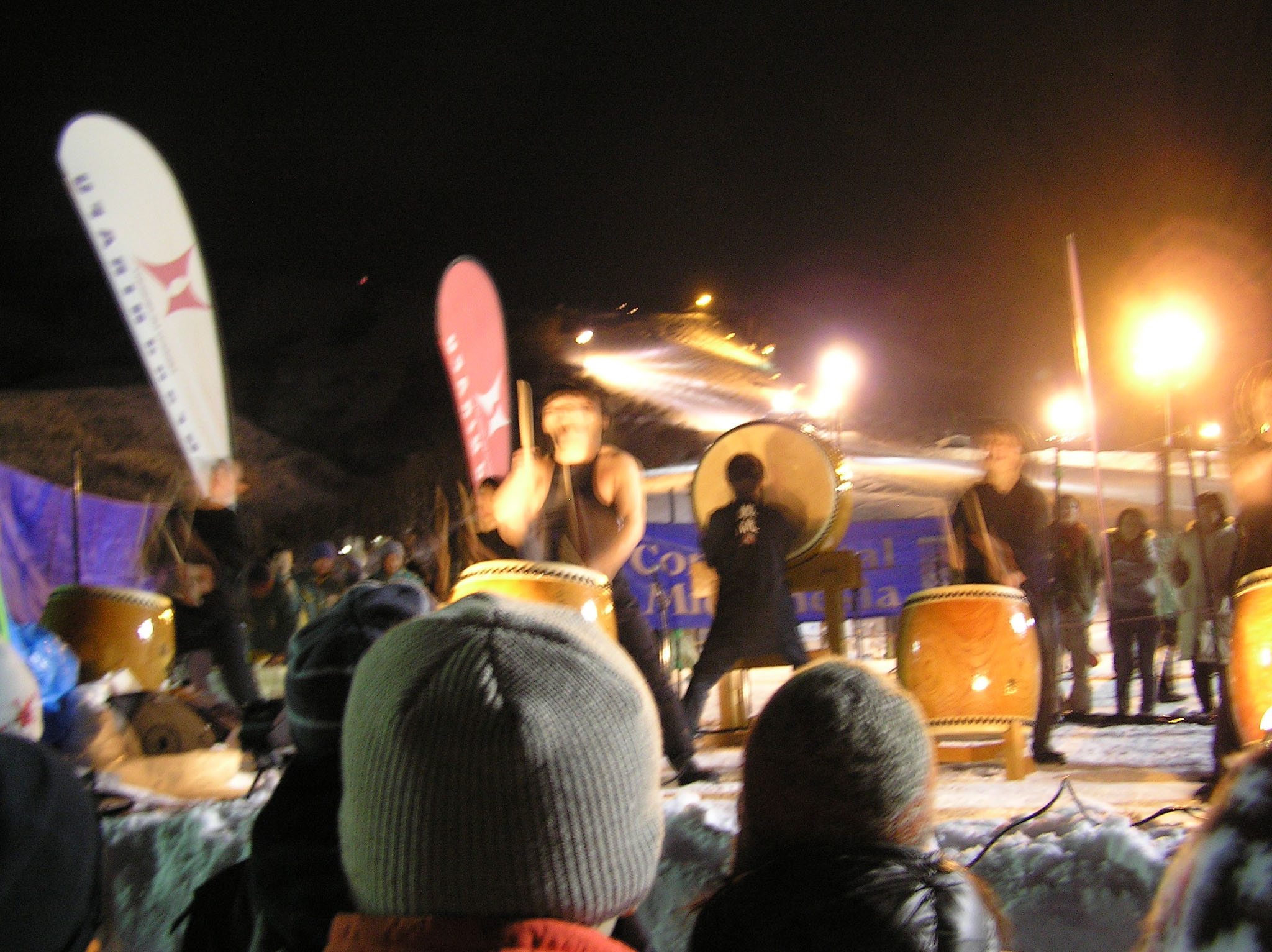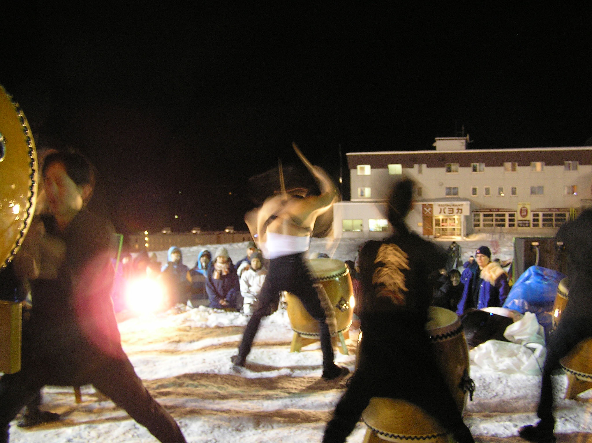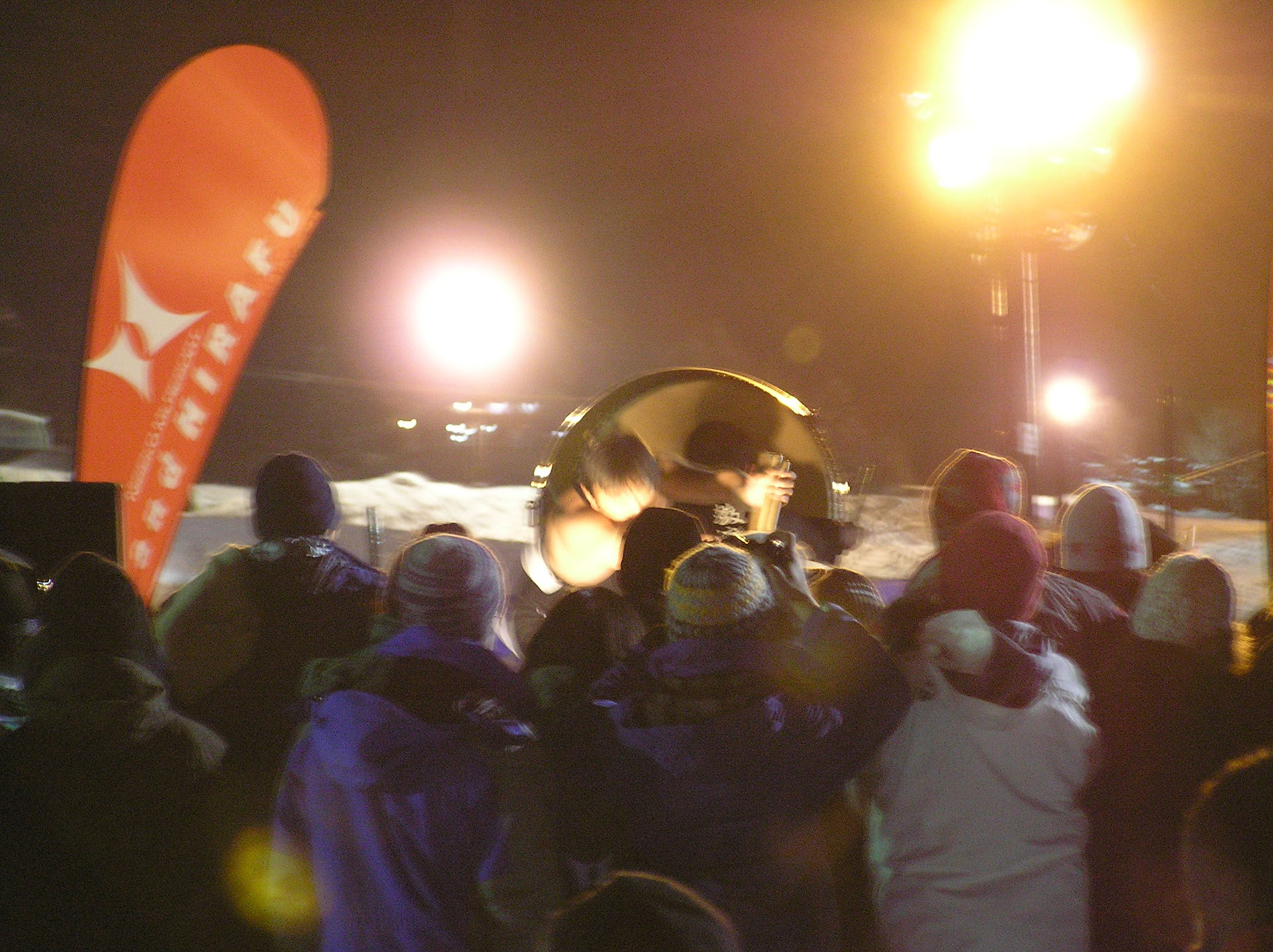 写真がぼやけていてごめんなさい、これが終わった後は新年のカウントダウンが始まり、happy neuw yearの叫びとともに、ゲレンデからスキーでのたいまつ滑走が始まりました。