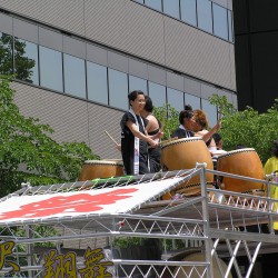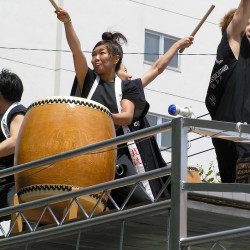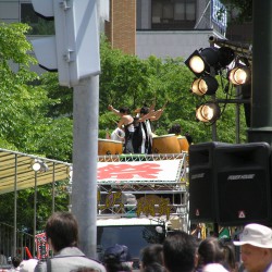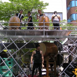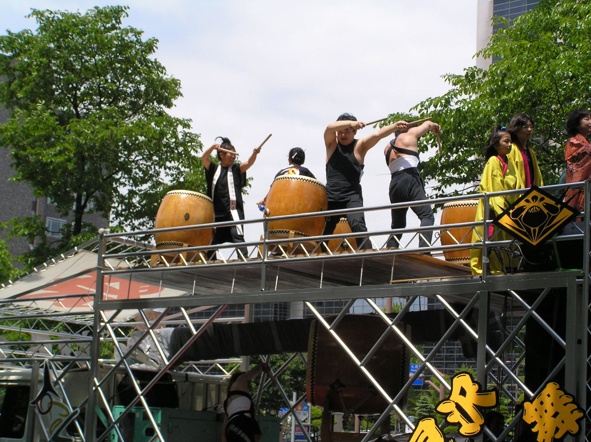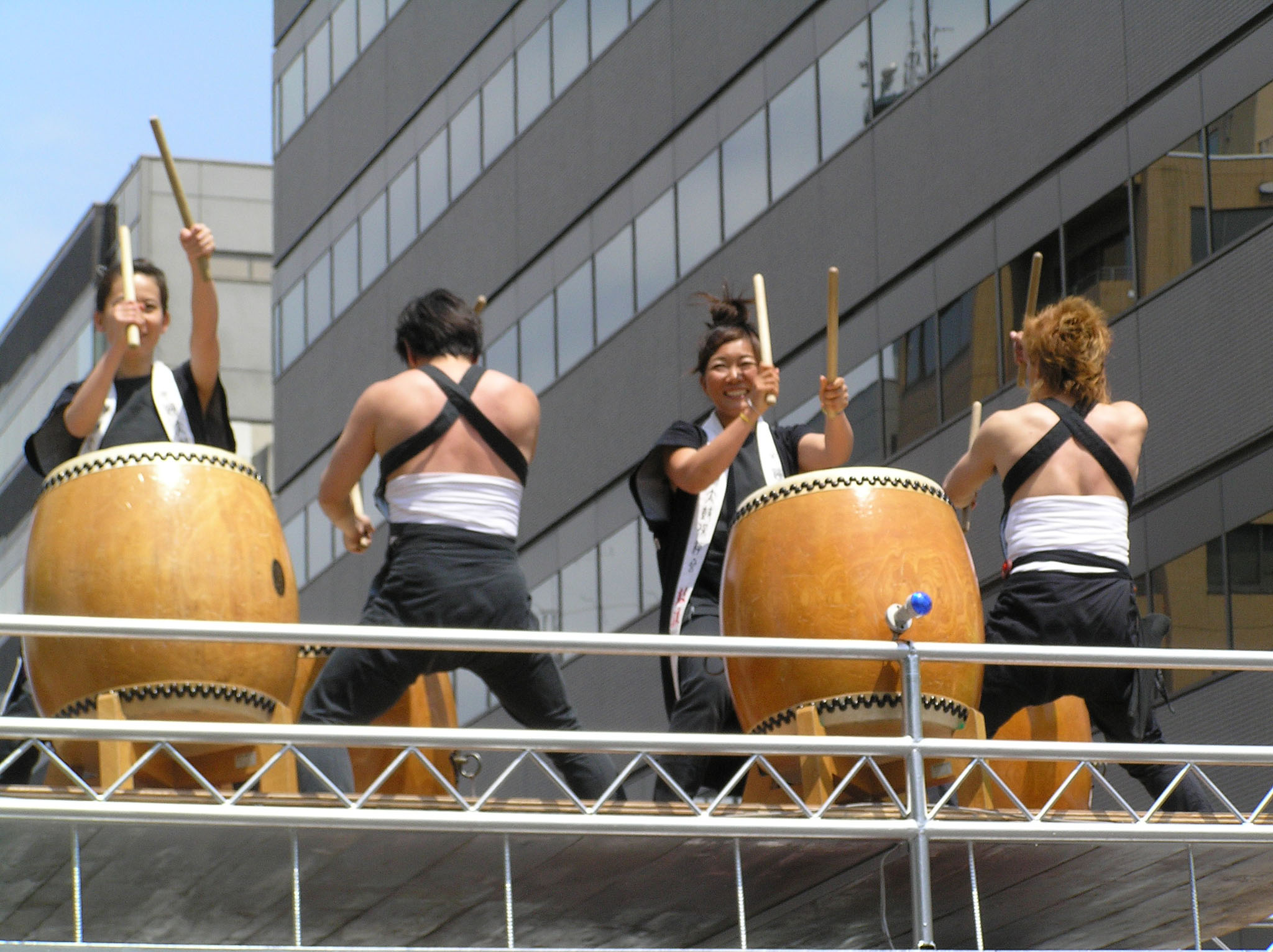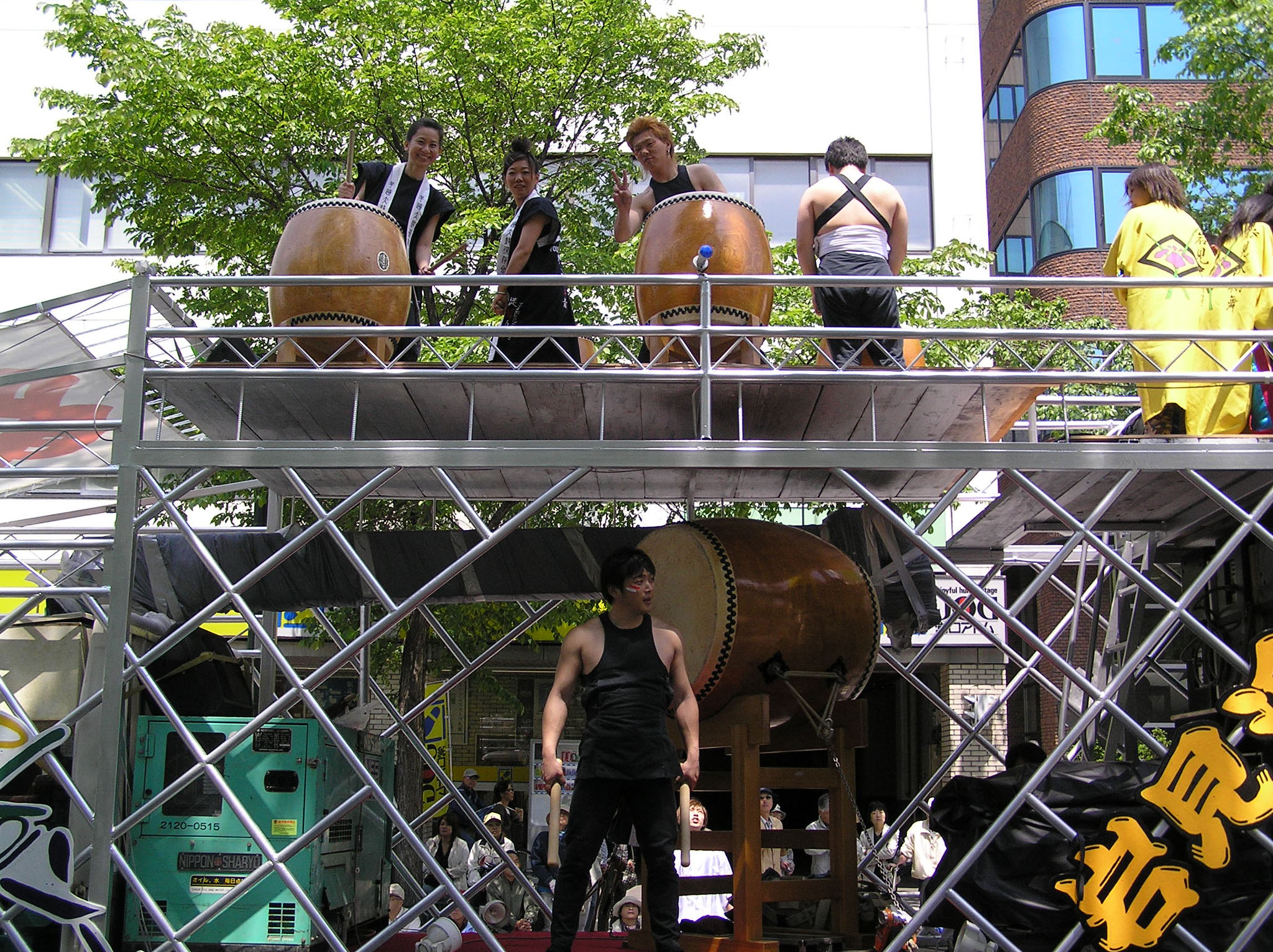 岩見沢翔舞というよさこいのチームがあり、私たちの仲良しなので、「曲にあわせて太鼓を叩いてほしい」という依頼で、言わばお手伝いで演奏をしてきました。