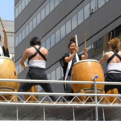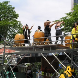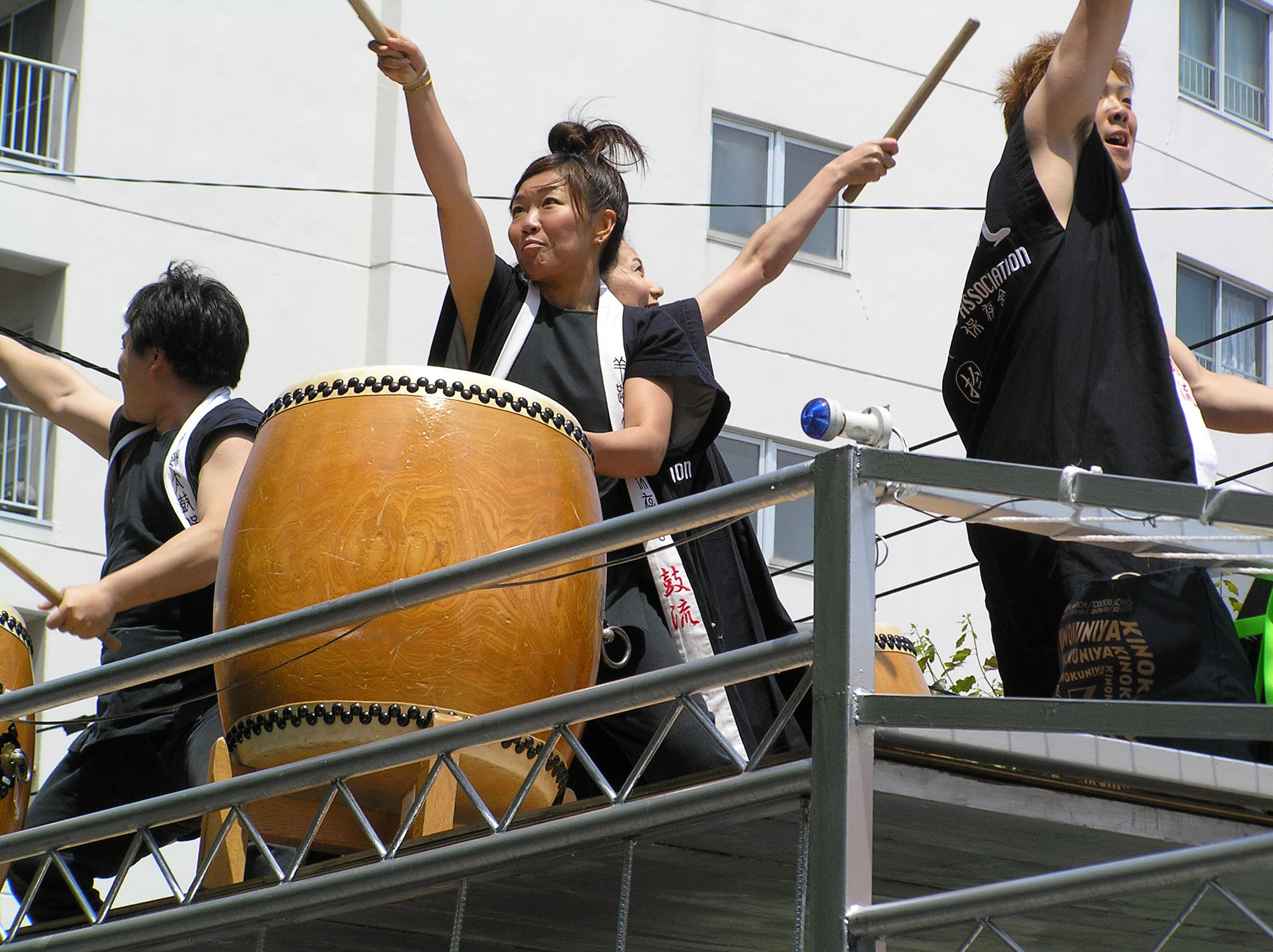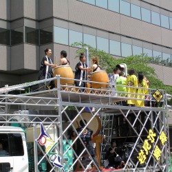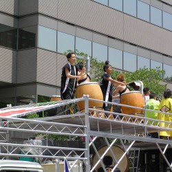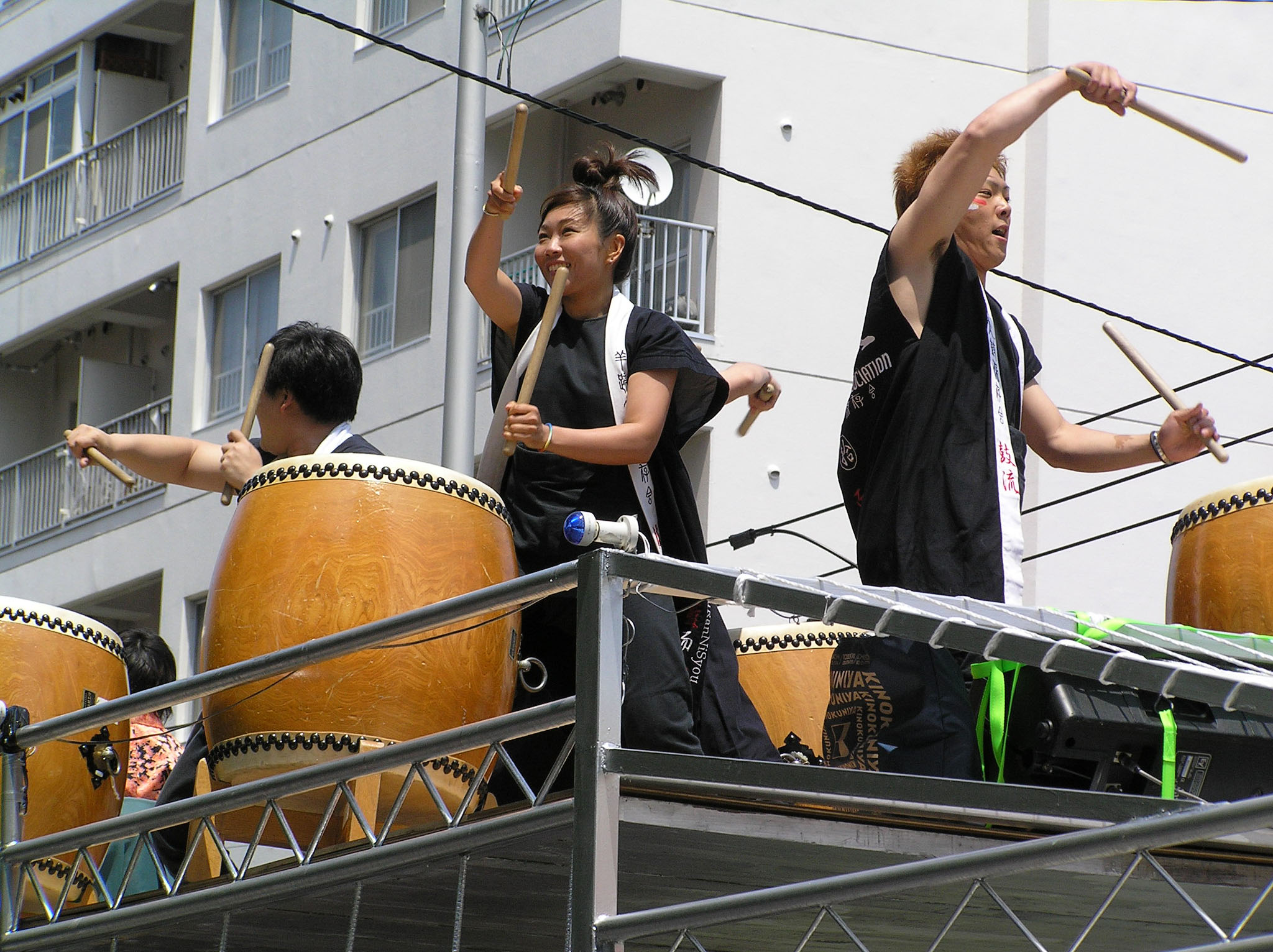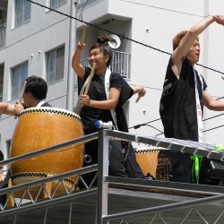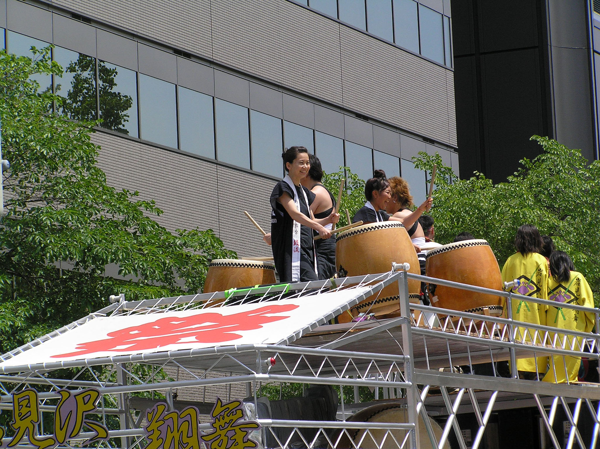 演奏は、10・11日の2日間で、パレードでは地方車の上で、ステージではじかに太鼓を設置して演奏しました。